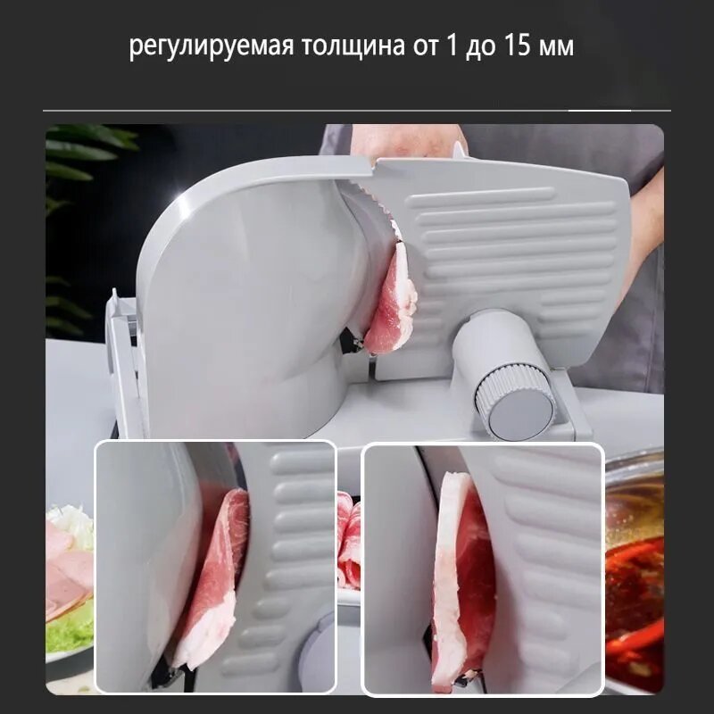 Ломтерезка электрическая , слайсер для нарезки мяса, колбасы, сыра, овощей, бытовая техника для кухни интересное: