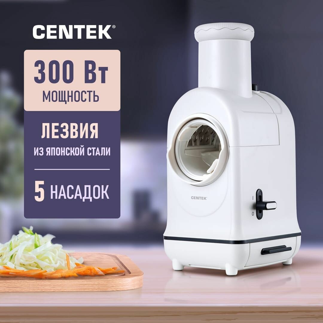 Купить Мультирезка электрическая Centek 300Вт 5 насадок: измельчение, шинковка, волнистая, грубая нарезка. Электротерка. Измельчитель кухонный