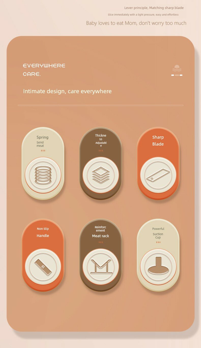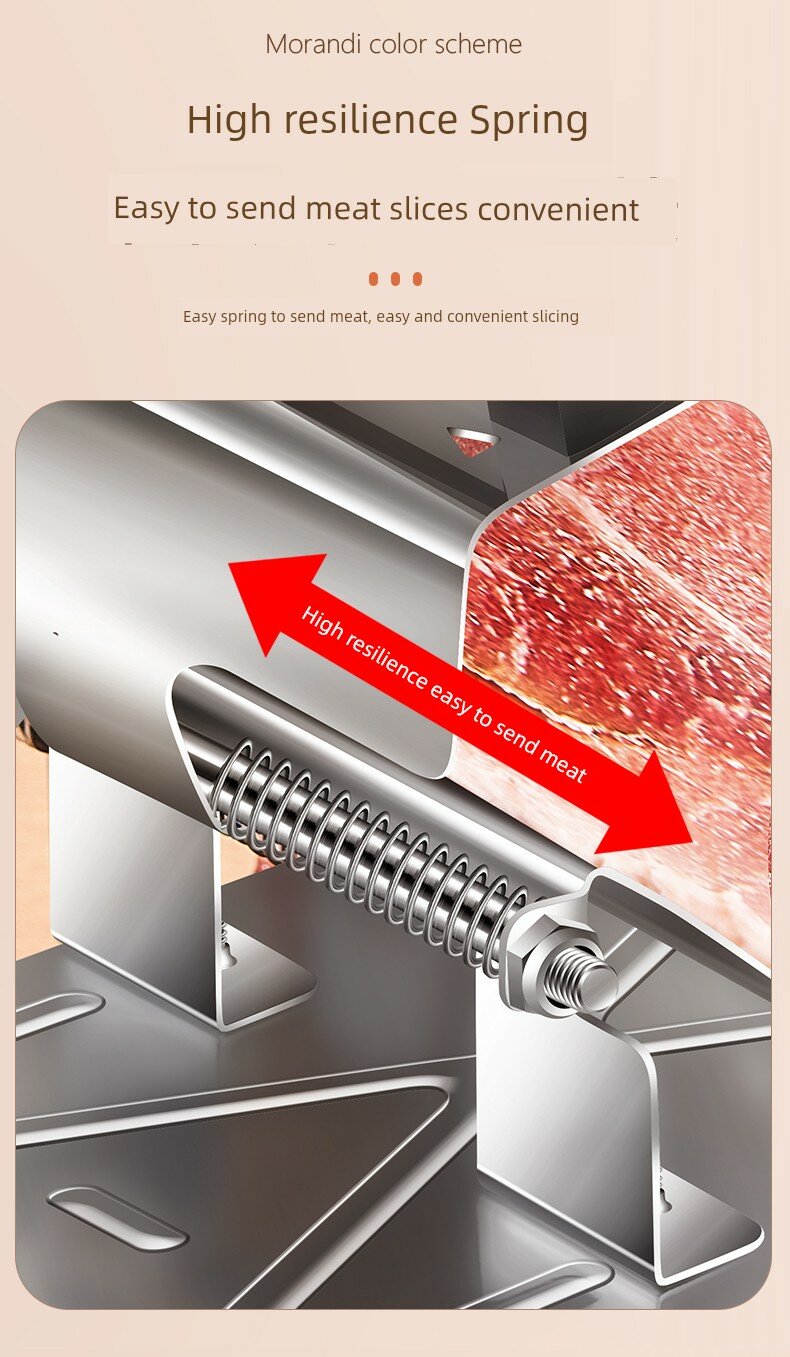 | Дополнительные функции | Автоматическая подача мяса пружиной, регулируемая толщина нарезки |