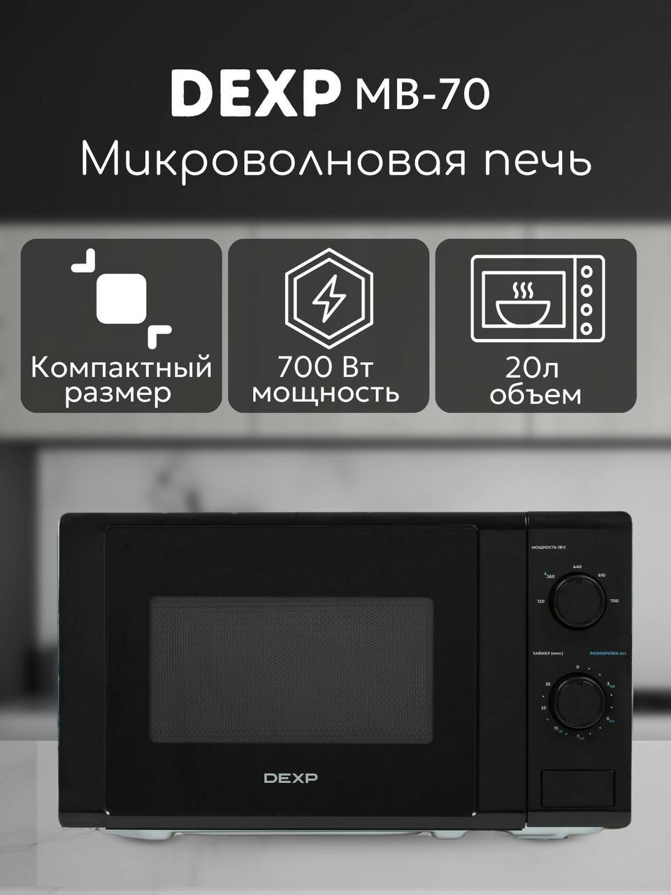 Купить Микроволновая печь DEXP MB-70 (20 л, 700 Вт) эмалированная сталь, черный