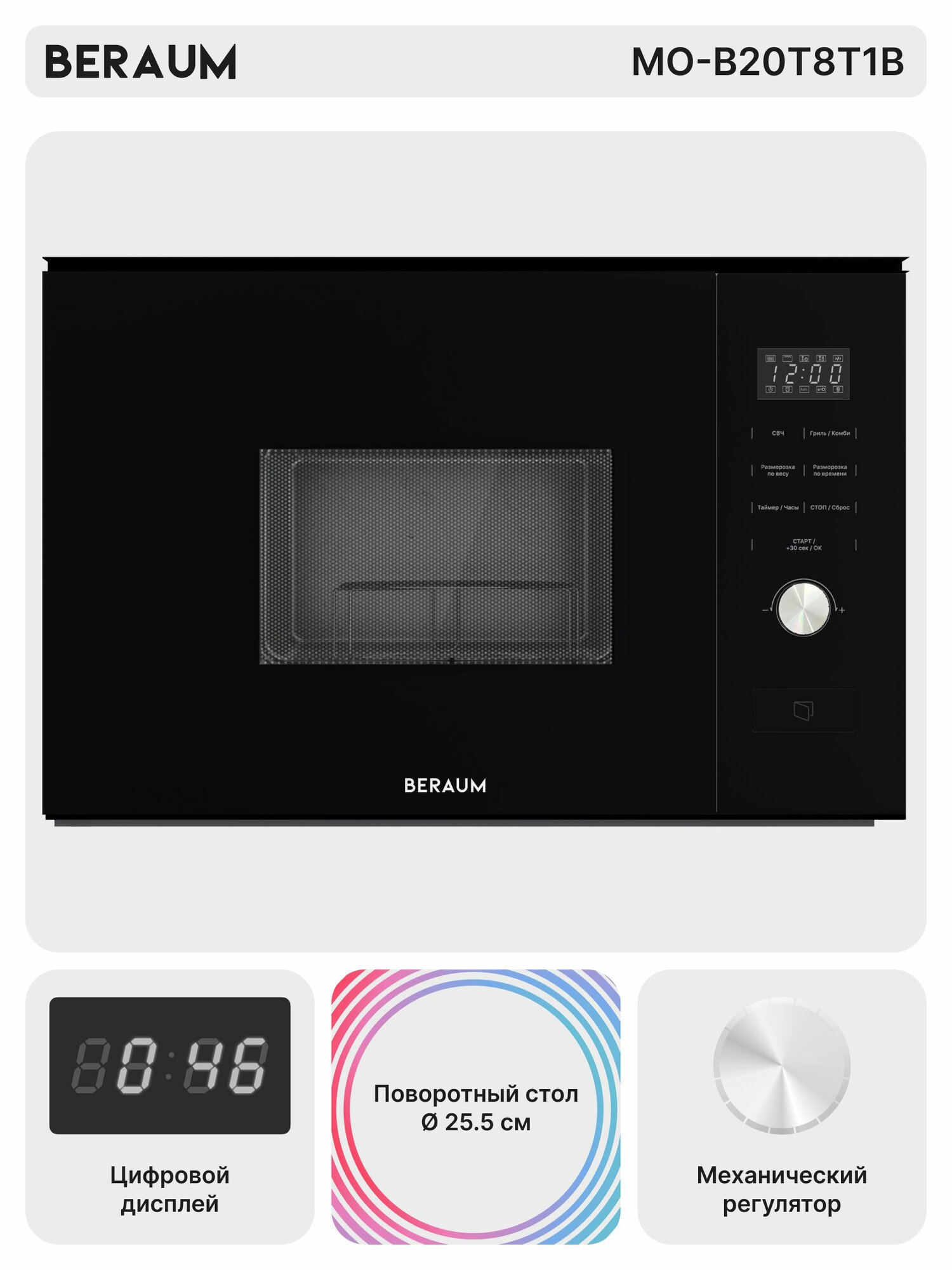 Микроволновая печь встраиваемая Beraum MO-B20T8T1B, 20 л, с грилем интересное: