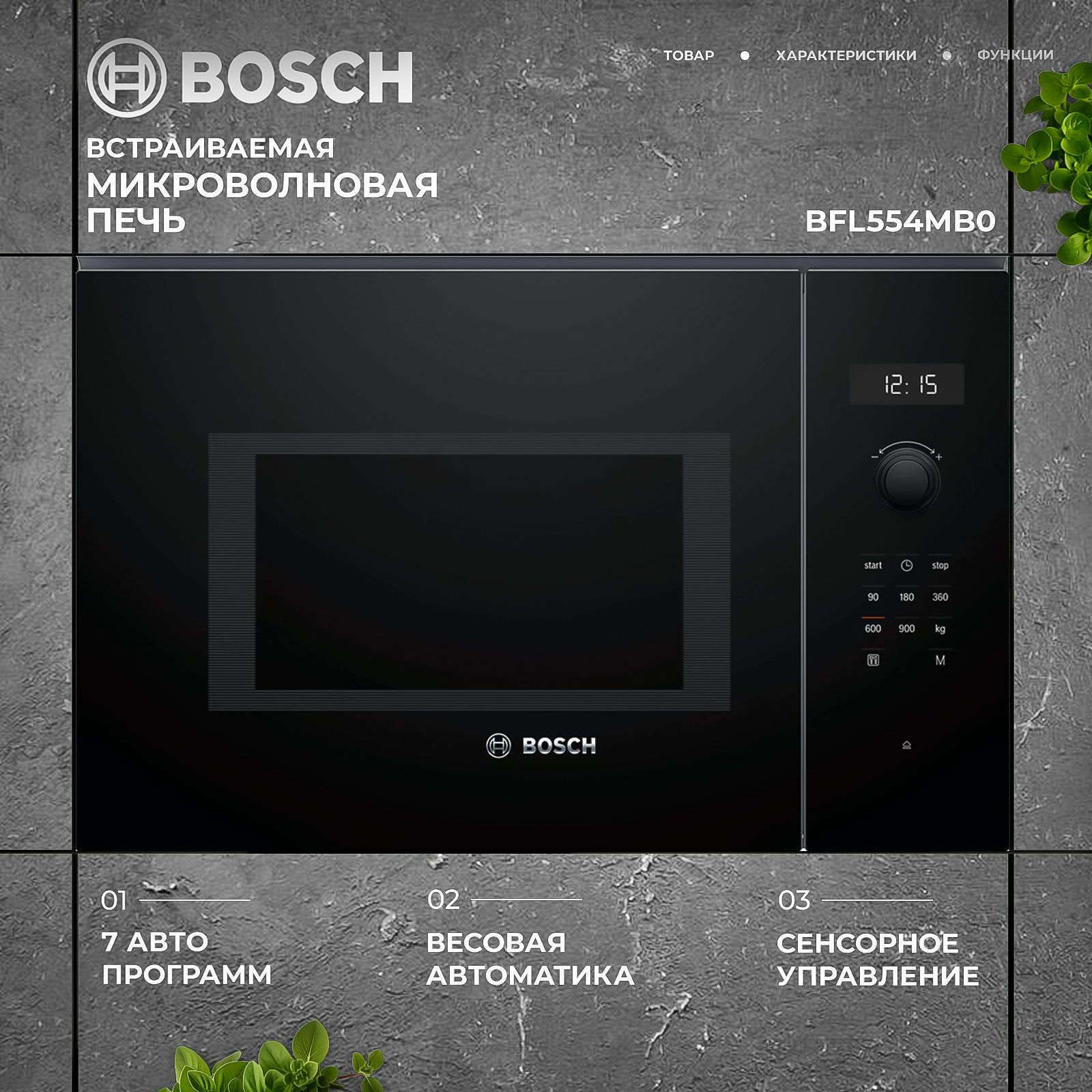 Встраиваемая микроволновая печь BOSCH BFL554MB0, сенсорное управление, 25л интересное: