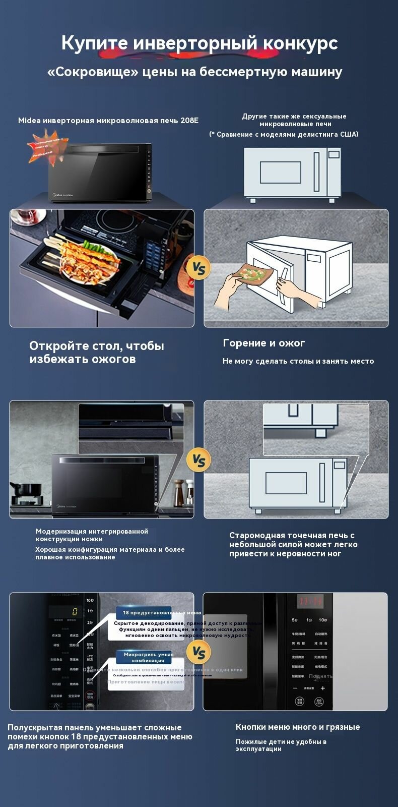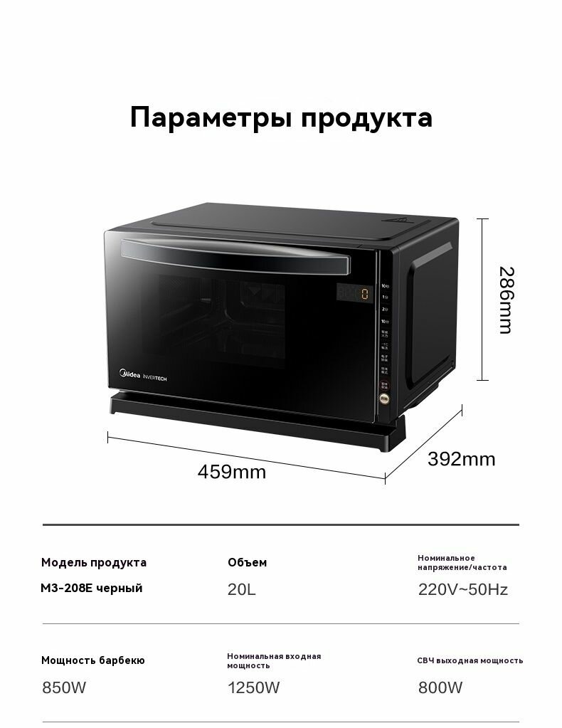 Умная микроволновая печь(Умная духовка) Midea M3-208E черное интересное: