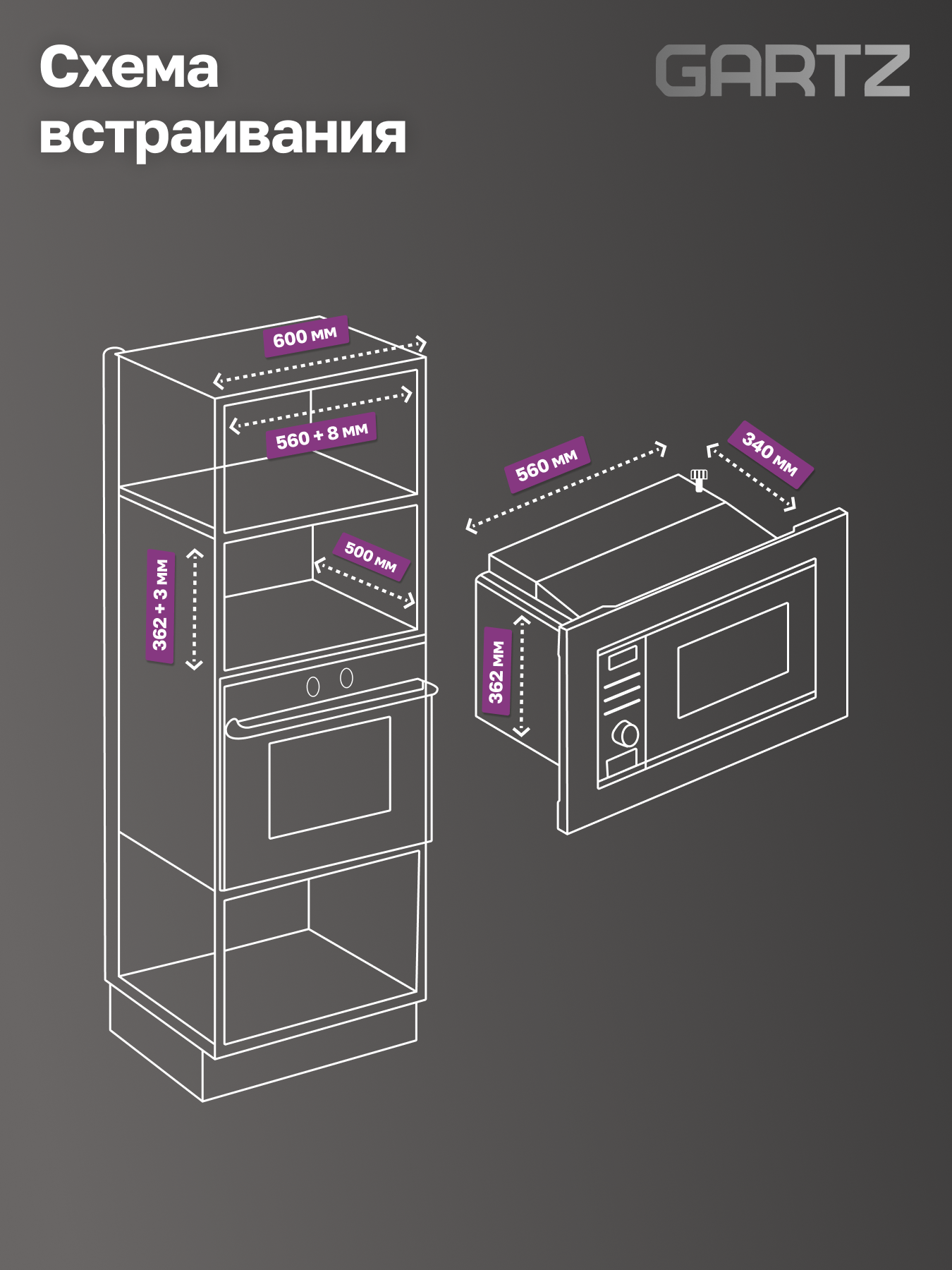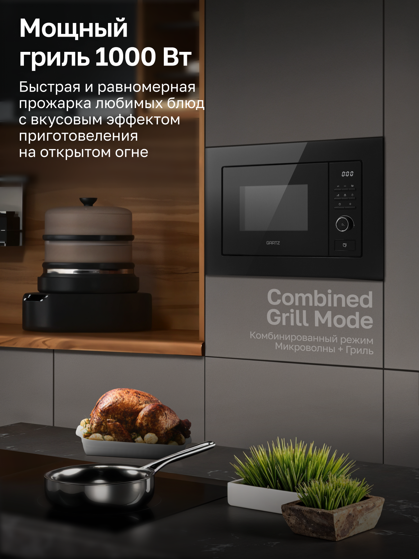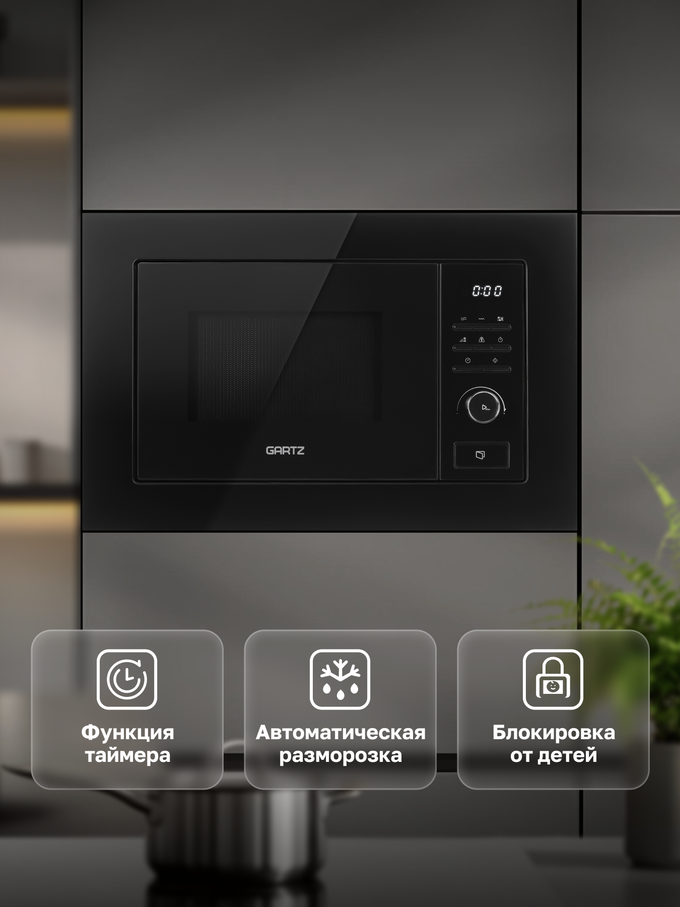 Встраиваемая микроволновая печь GARTZ MВB271B SmartCook, 20 л, 800Вт, 7 программ, дисплей, гриль, авторазморока, черная интересное: