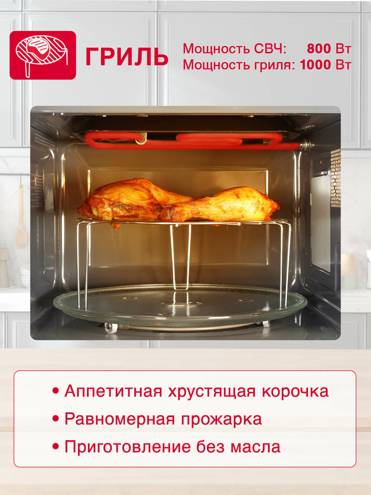 | В комплекте | Микроволновая печь / Роликовое кольцо / руководство по эксплуатации и гарантийный талон. / стеклянный поворотный стол 255 мм |