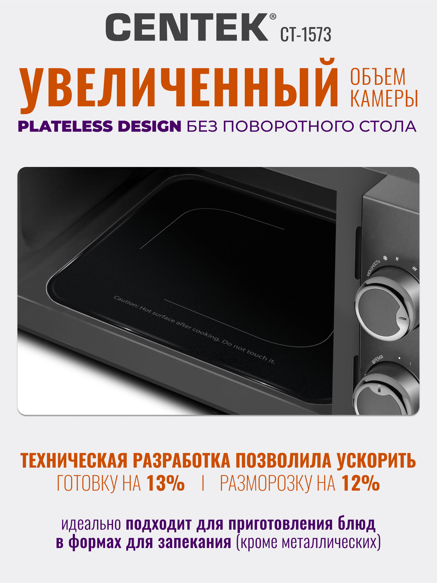 Микроволновая печь CENTEK CT-1573: без поворотного стола, 20л, легкая очистка, серый графит, микроволновка СВЧ интересное: