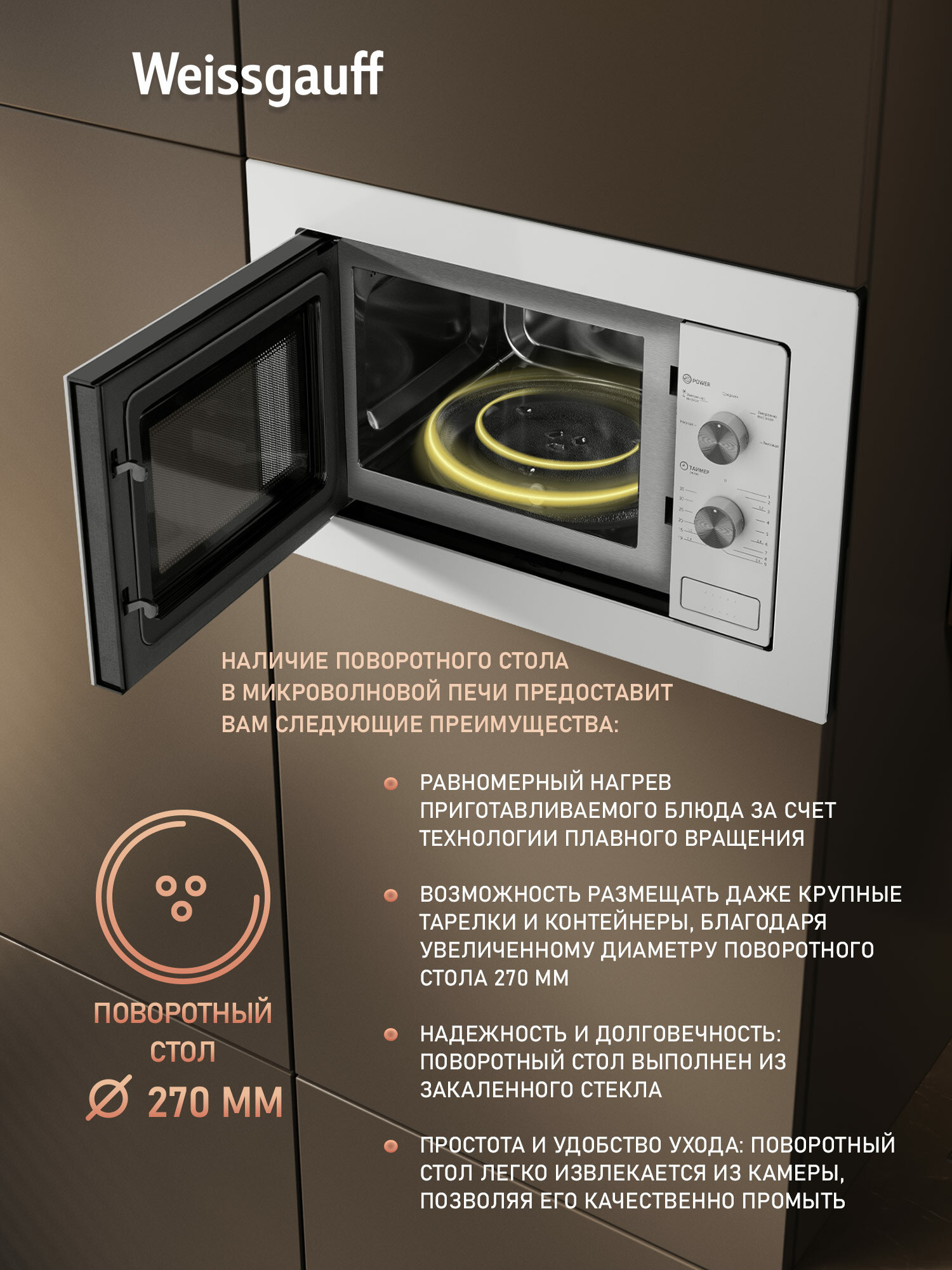 Встраиваемая Микроволновая печь Weissgauff HMT-2022 , Объем 21 литр интересное: