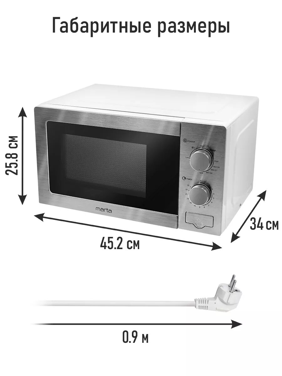 Ниже Вы можете прочитать отзывы на Микроволновка микроволновая печь СВЧ MARTA MT-MW4703B гриль белый/хром 23 л, ознакомится с подробными характеристиками, посмотреть интересные обзоры и фотографии на Микроволновка микроволновая печь СВЧ MARTA MT-MW4703B гриль белый/хром 23 л.