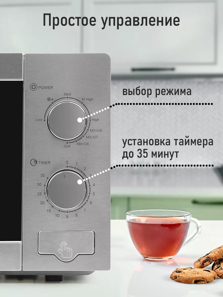 Микроволновая печь FS MWO D 20.10 WH, Сенсорное управление, 6 программ для приготовления, антипригарная эмаль, таймер, блокировка от детей.