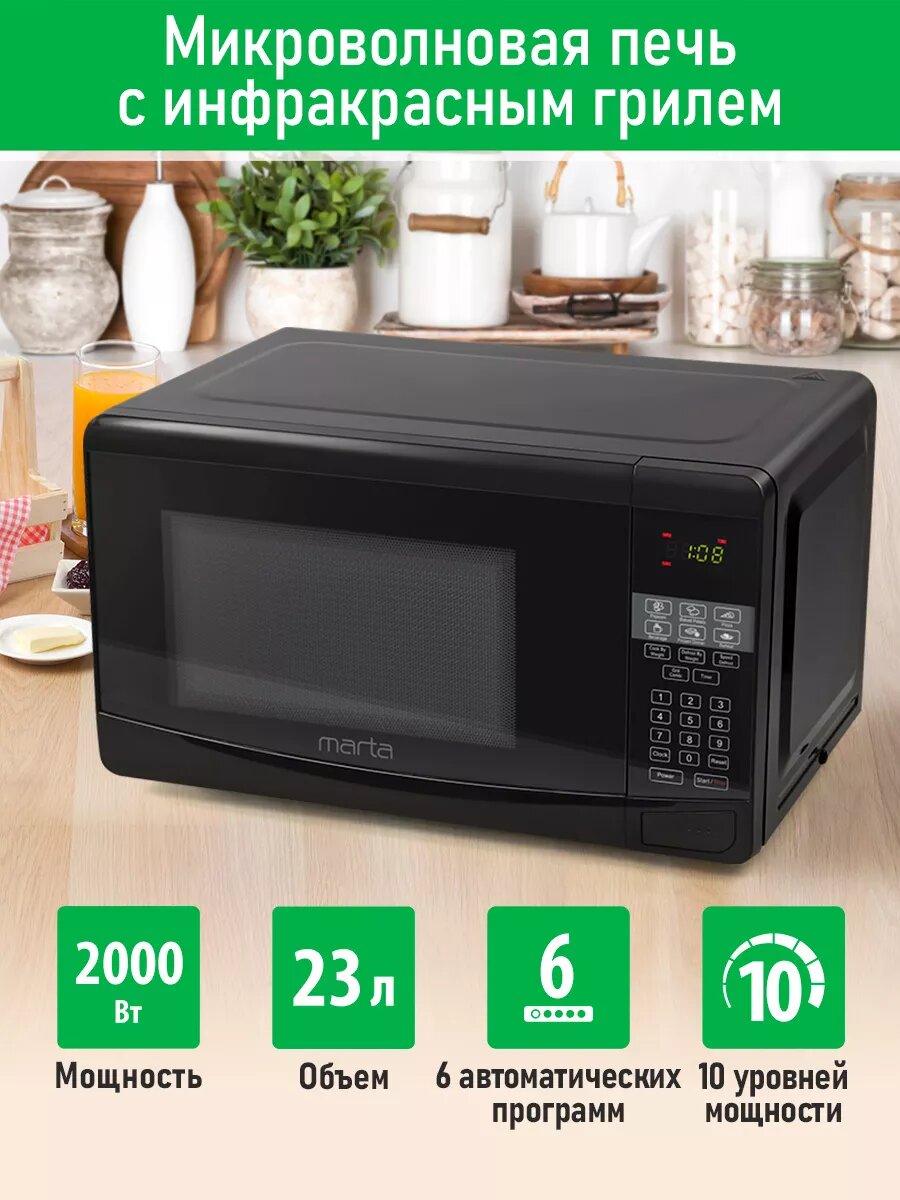 Микроволновка микроволновая печь СВЧ MARTA MT-MW4700A гриль черный 23 л интересное: