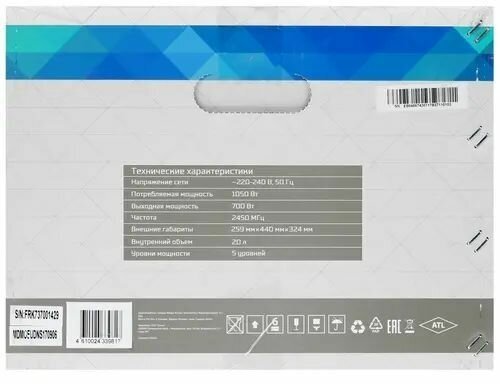 | Мощность микроволн | 700 Вт |