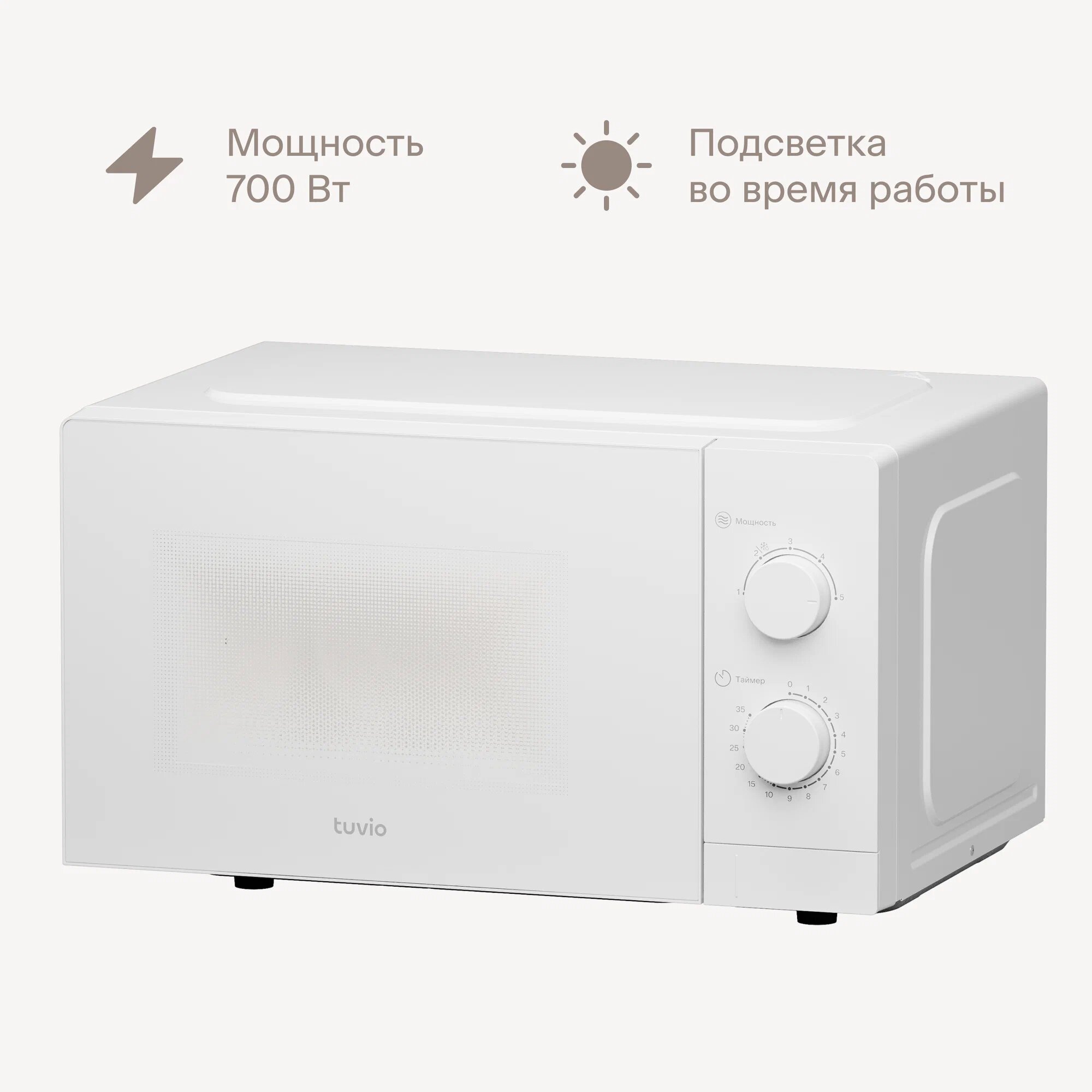 Микроволновая печь Tuvio MW02WB 20 л, с регулировкой мощности, таймер, белая интересное: