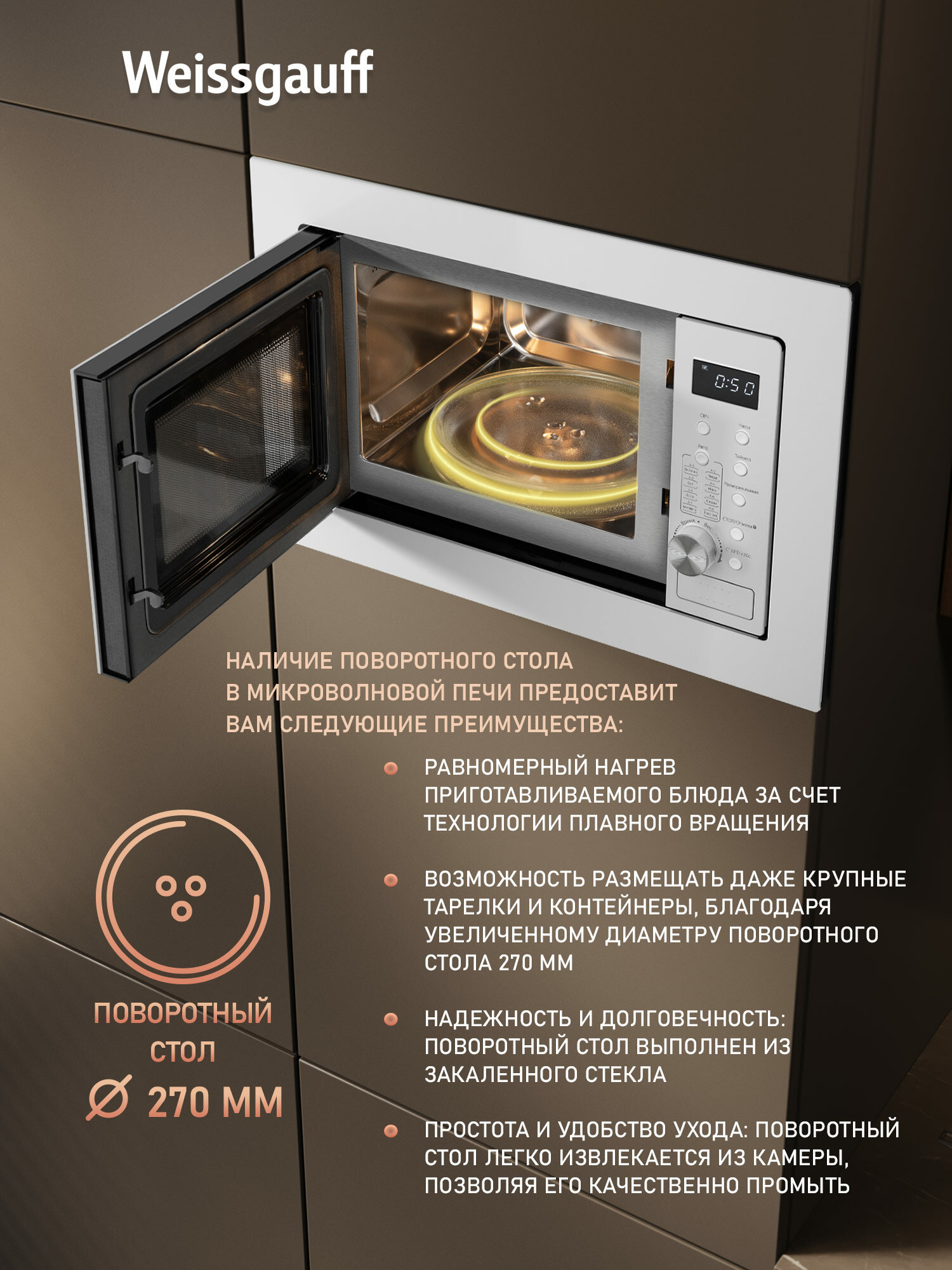 Встраиваемая микроволновая печь Weissgauff HMT-2062 , Объем 21 литр интересное: