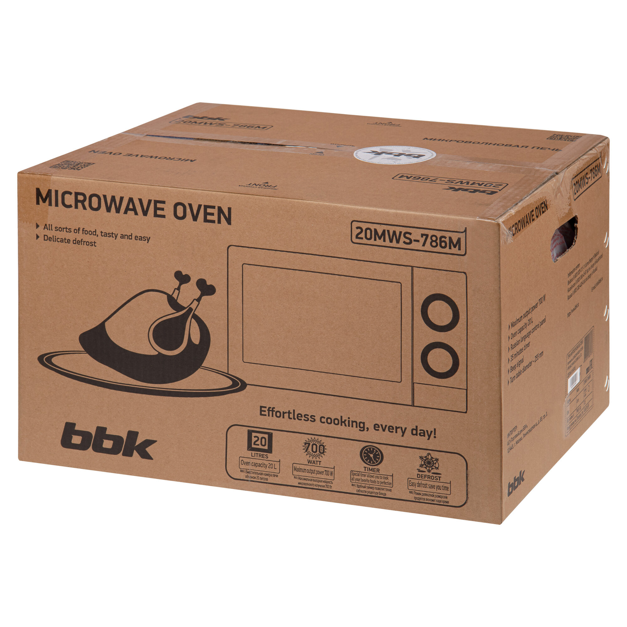 Купить Микроволновая печь BBK 20MWS-786M/W белый, объем 20 л, мощность 700 Вт, разморозка по весу