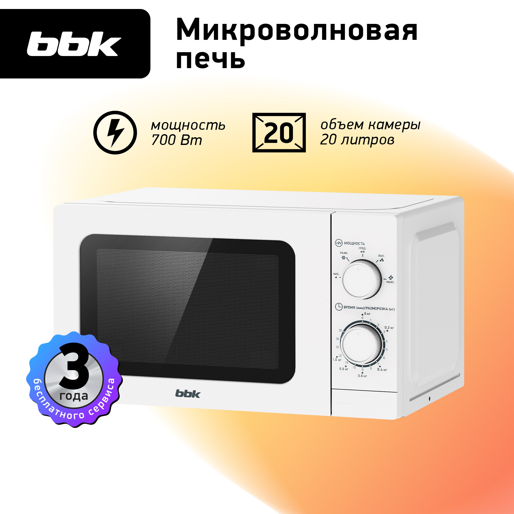 Микроволновая печь BBK 20MWS-786M/W белый, объем 20 л, мощность 700 Вт, разморозка по весу интересное: