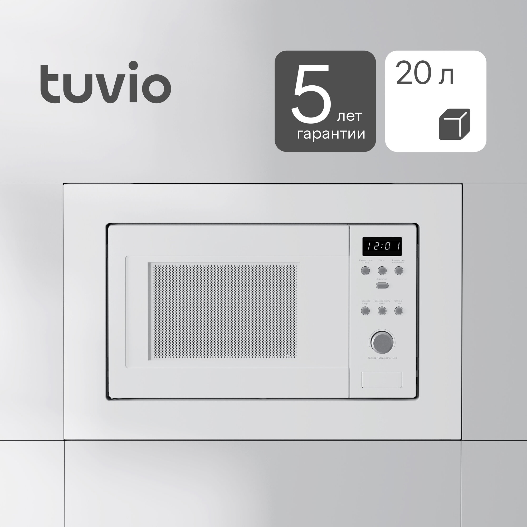 Встраиваемая микроволновая печь с функцией гриля и разморозки Tuvio MB20GES8W11, белый интересное: