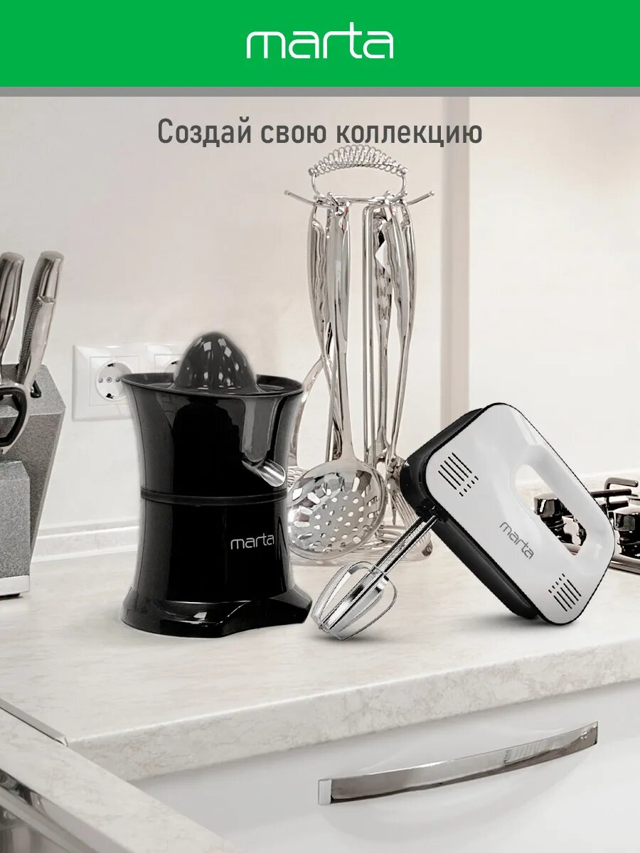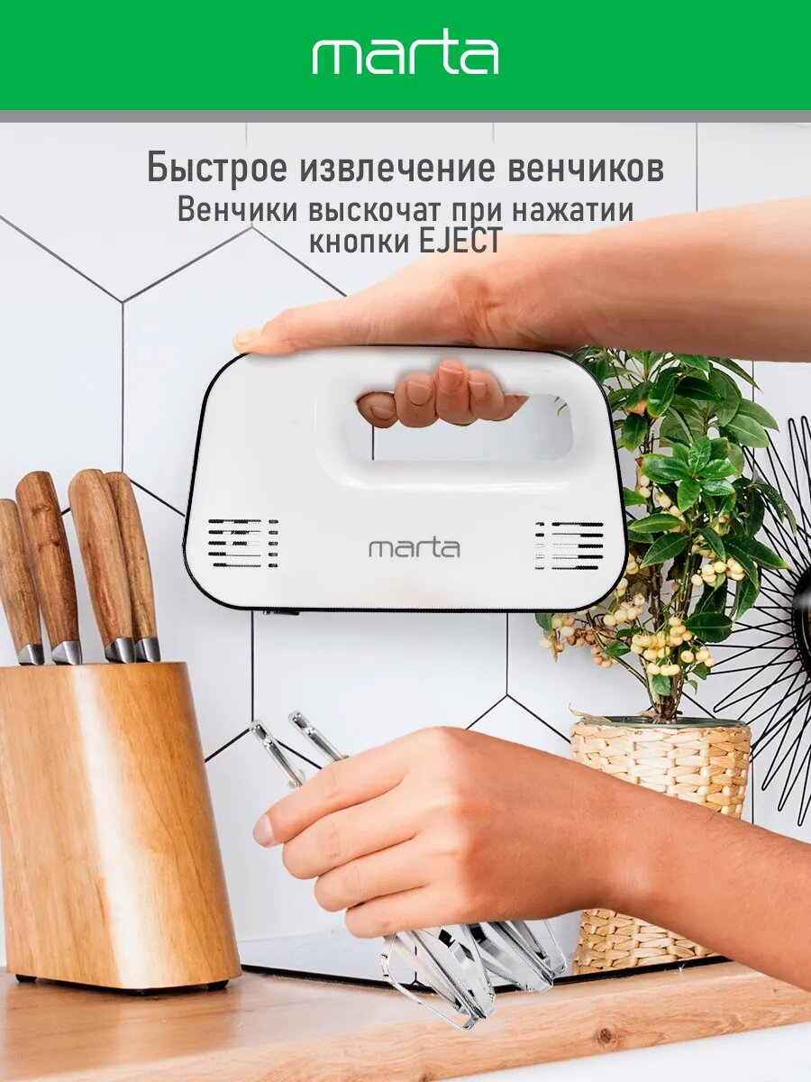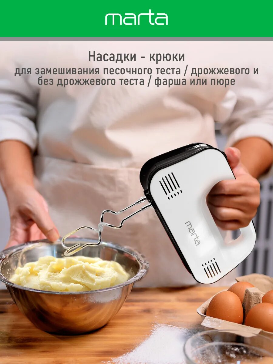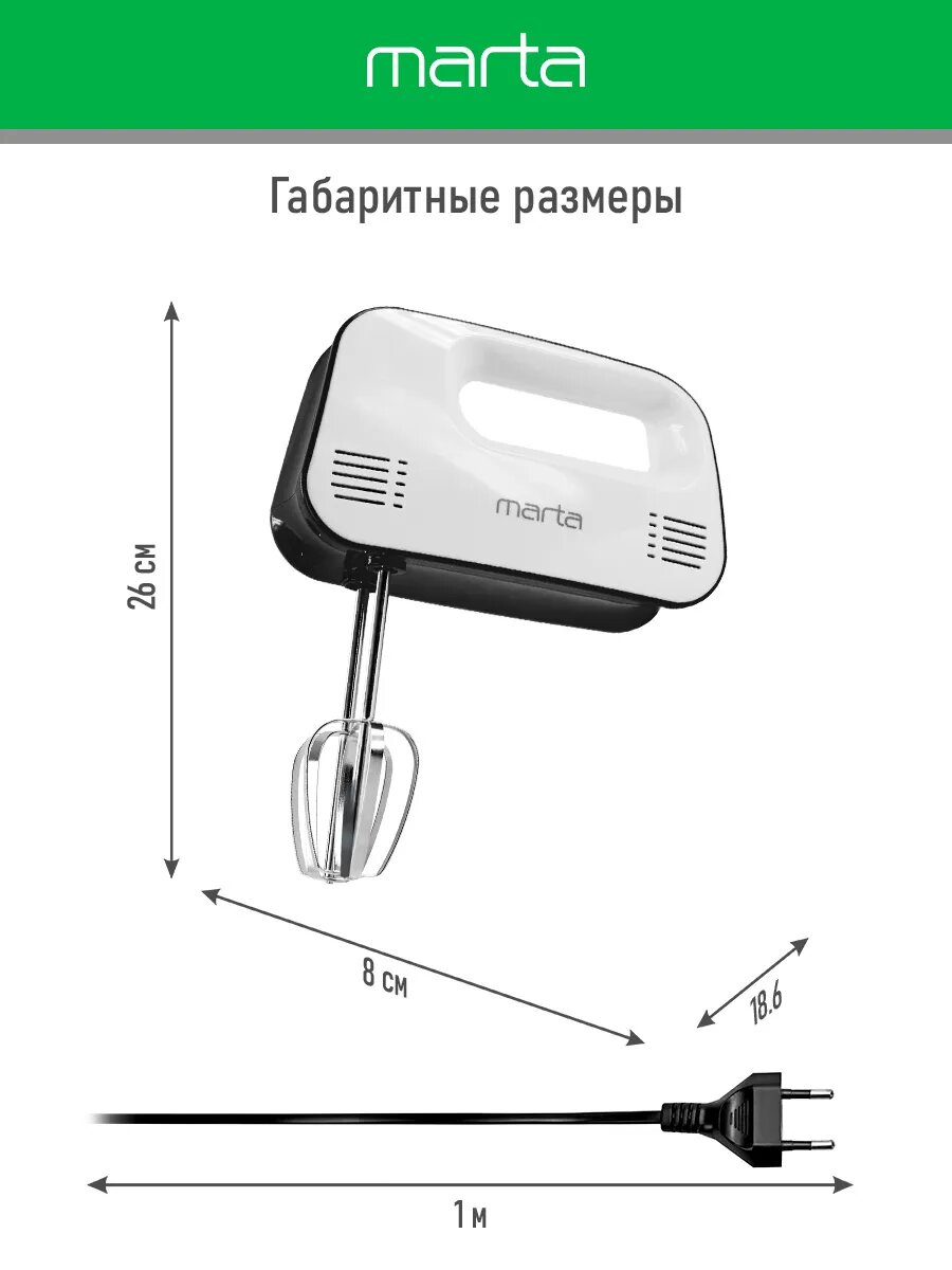 Миксер ручной MARTA MT-MX1524A ручной, 3 скорости, белый/черный интересное: