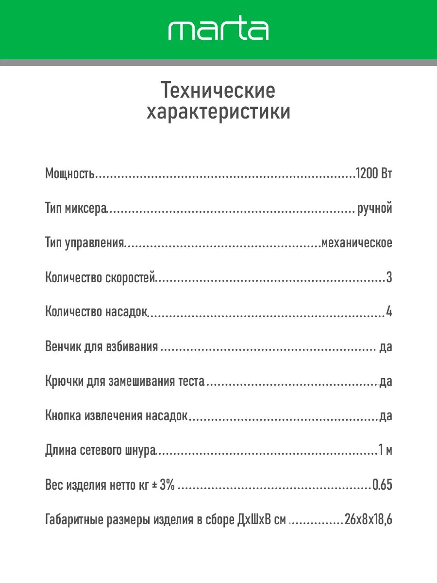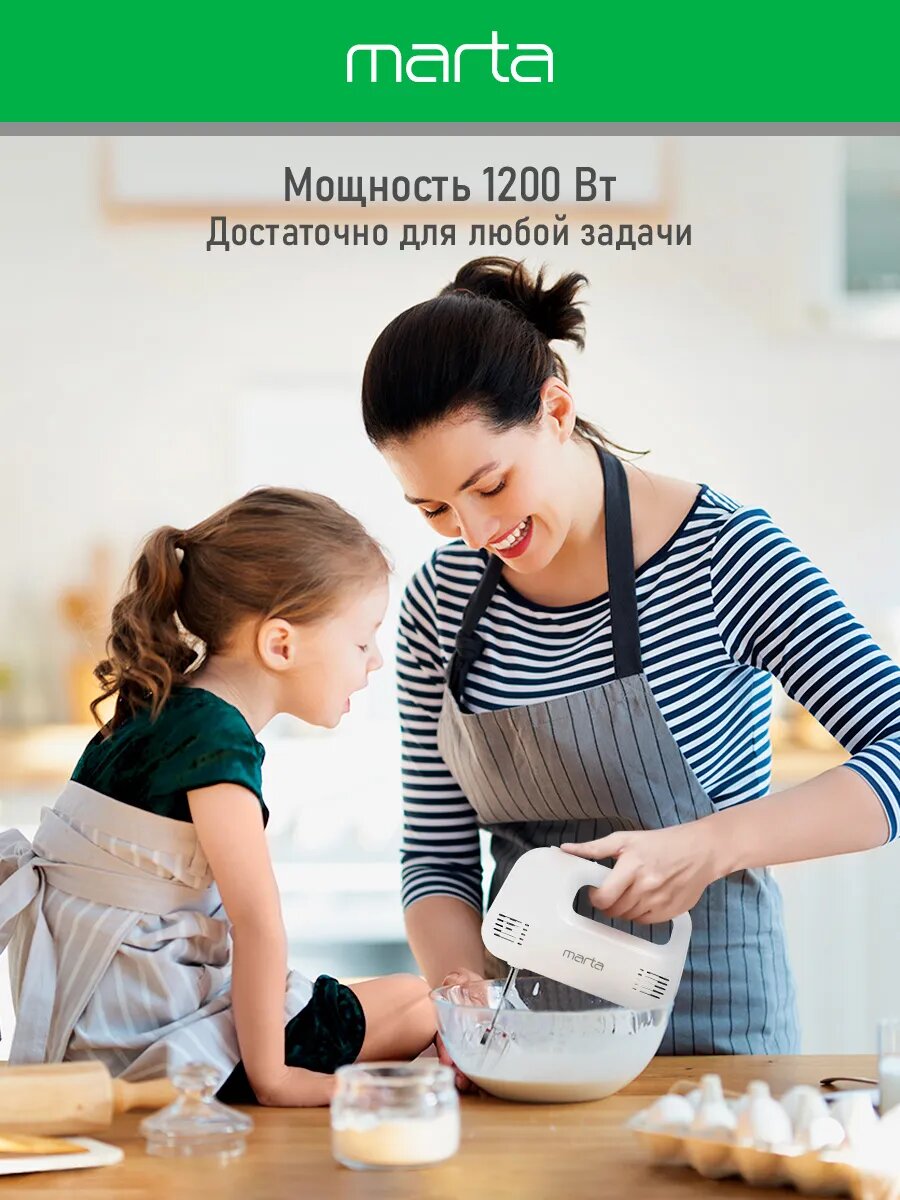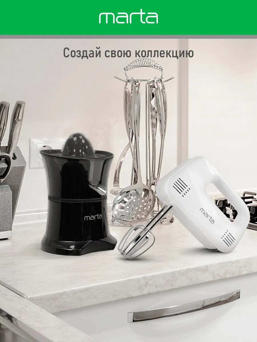 Миксер ручной MARTA MT-MX1524A, 500Вт, 3 скорости, пластик, белый интересное: