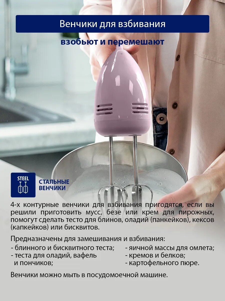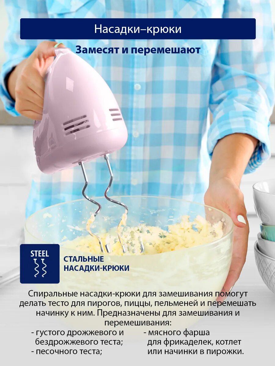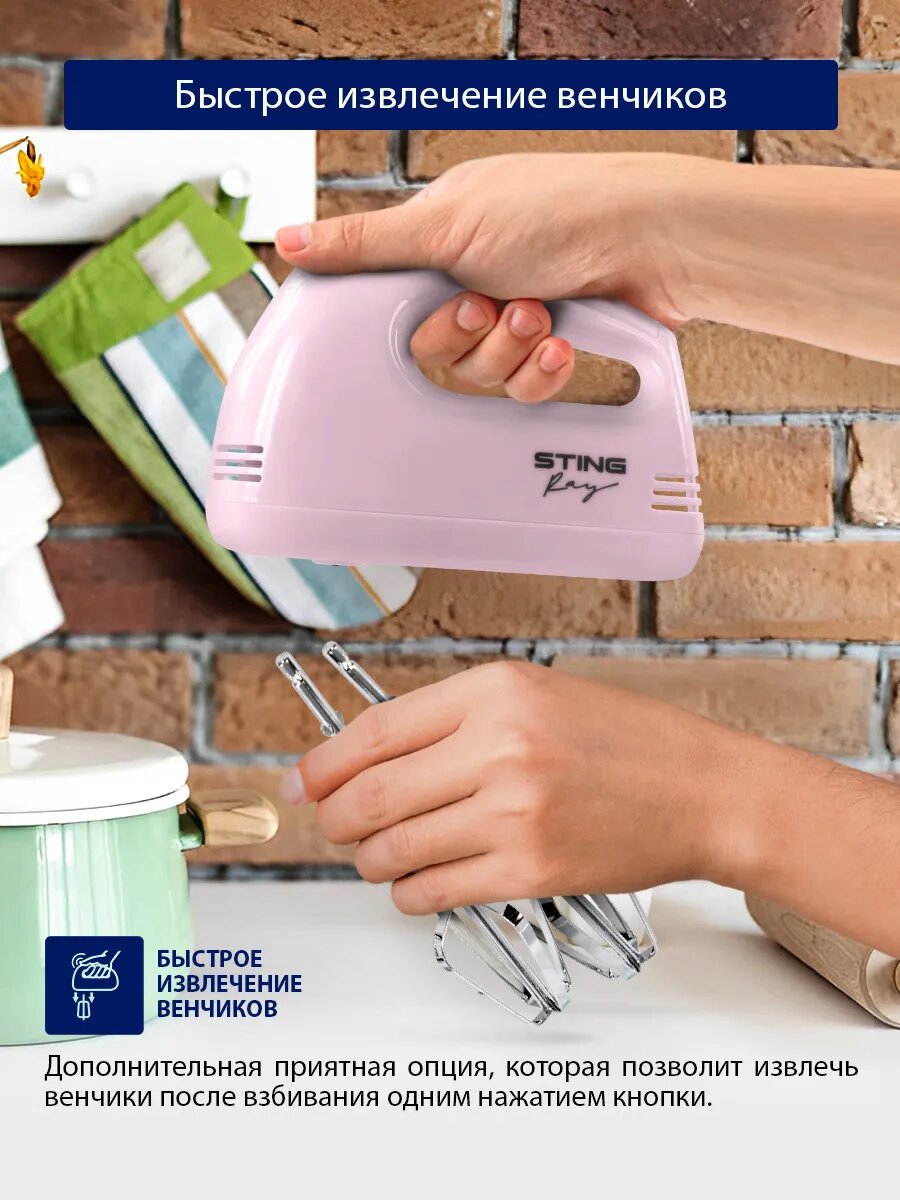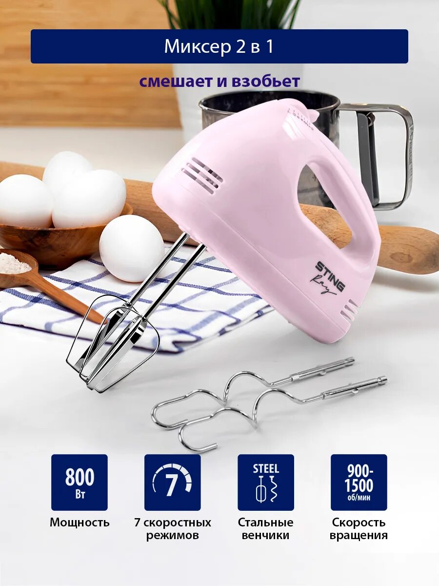 Миксер ручной STINGRAY ST-MX2005A ручной, 4 насадки, розовый интересное:
