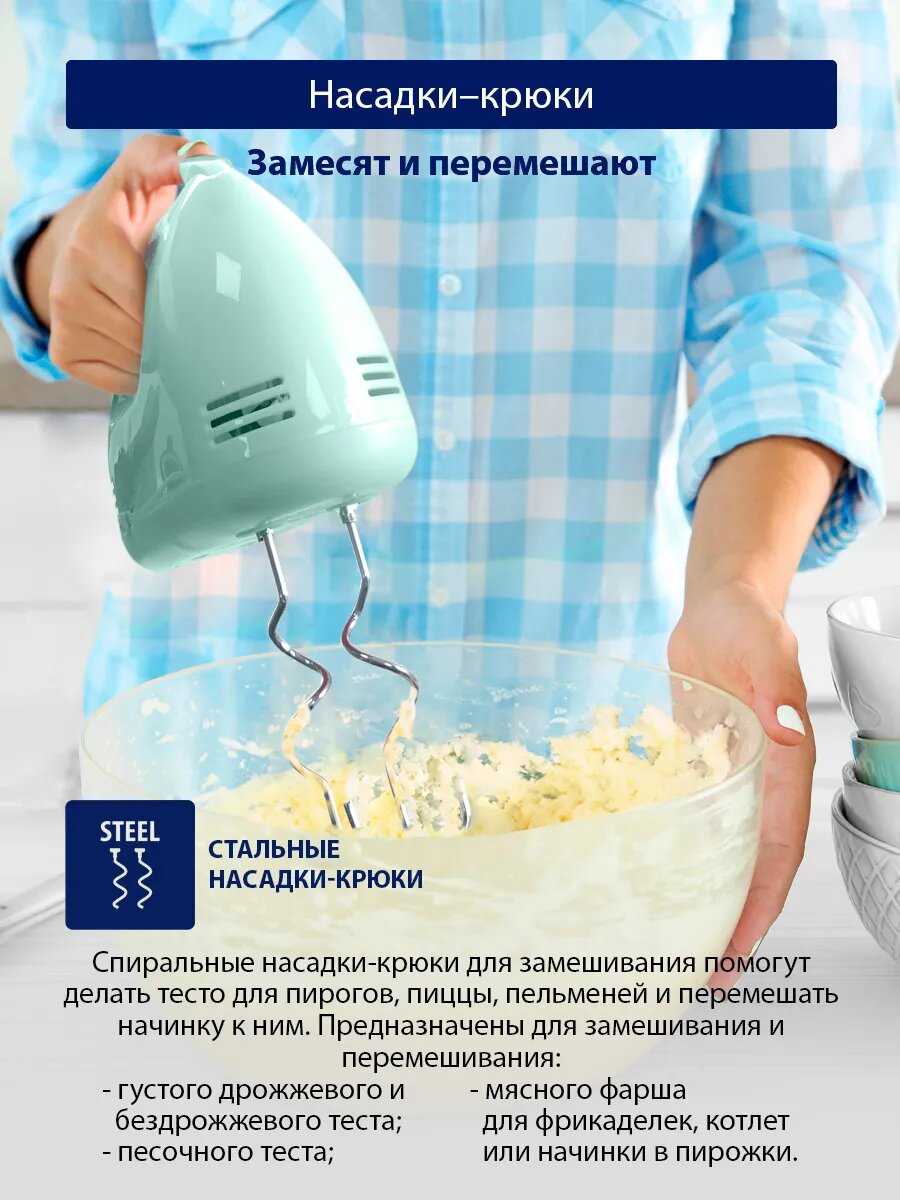 | Насадки | крючки для замешивания теста / для взбивания / для измельчения |
