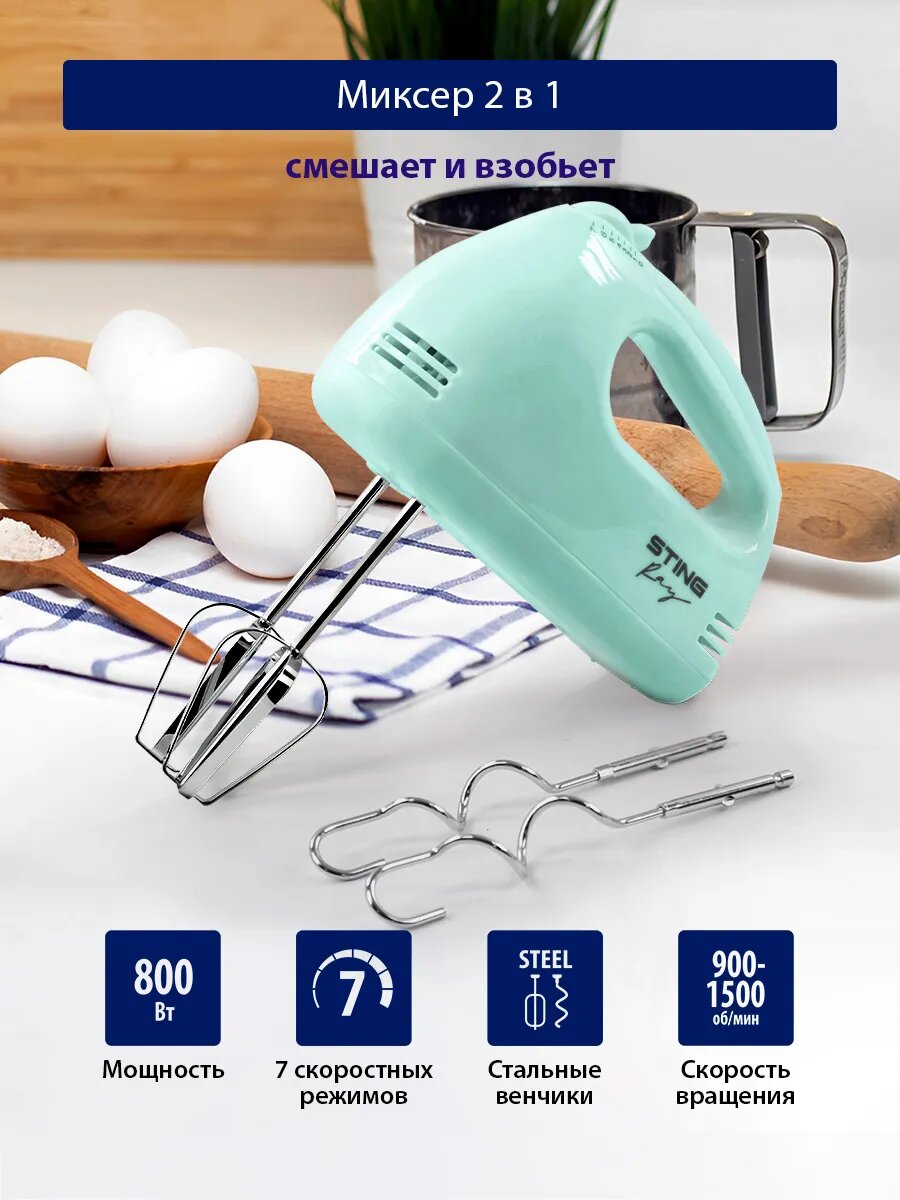 Миксер STINGRAY "ST-MX2005A", 500Вт, 7скоростей, кнопка отсоединения, зеленый интересное: