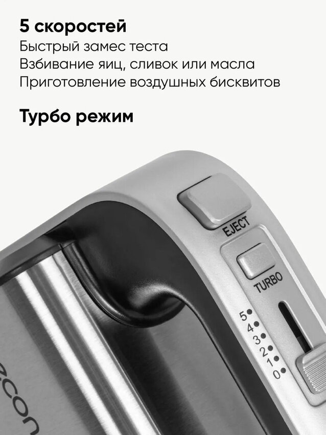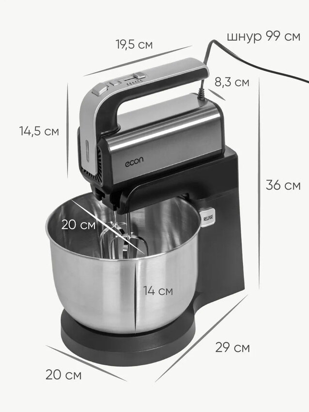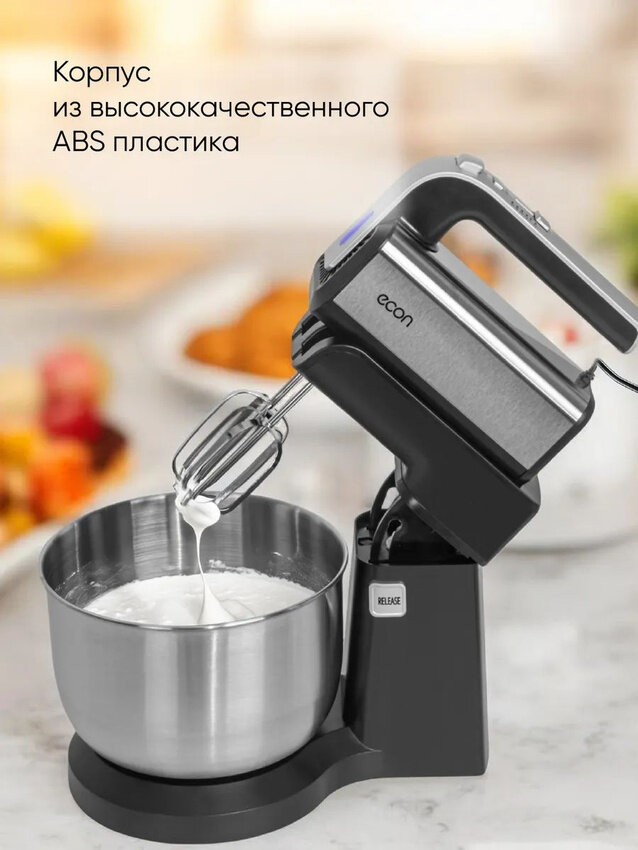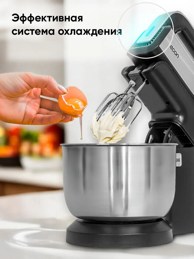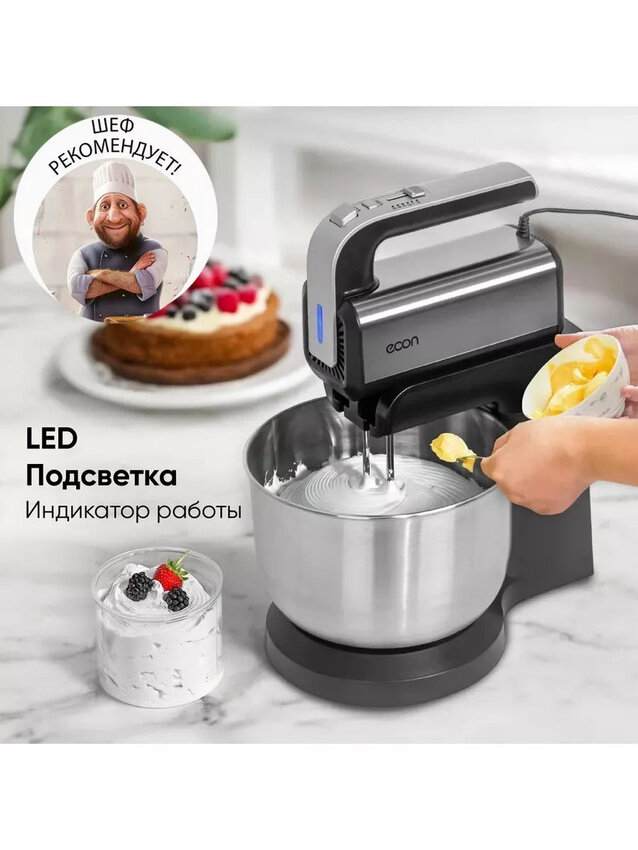 Миксер стационарный с вращающейся чашей 3,5 л ECON ECO-225MX,5 скоростей, режим ТУРБО, подсветка, 4 насадки, 350 Вт интересное: