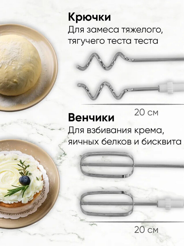 | Насадки | венчик для взбивания / крючки для замешивания теста |