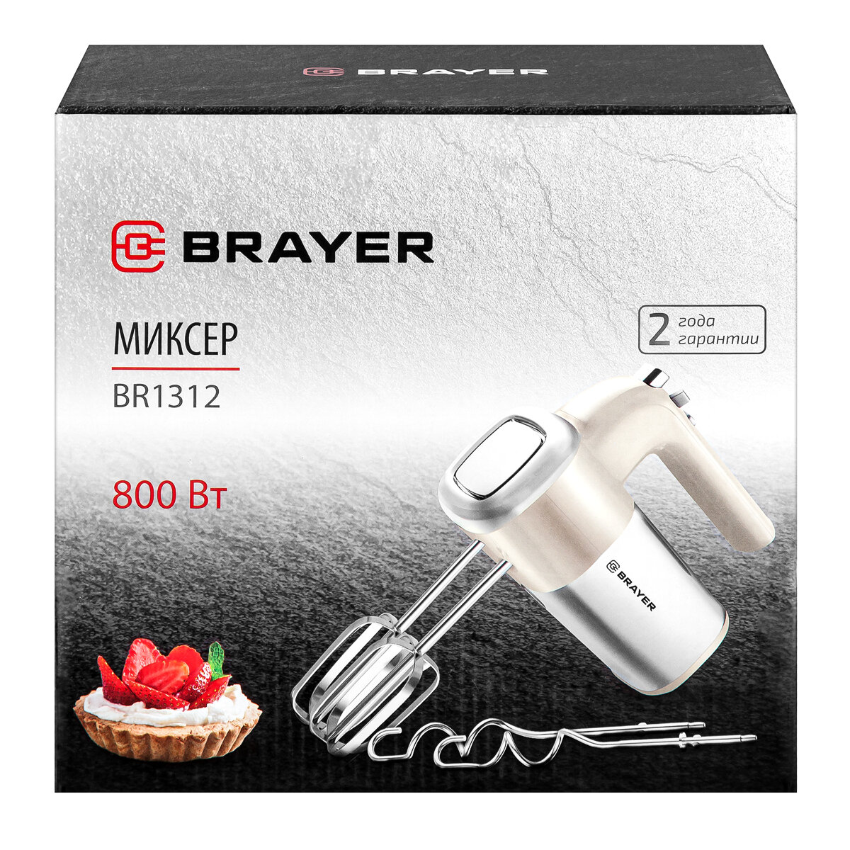Миксер электрический ручной BRAYER BR1312, 800 Вт, 5 режимов, турбо, бежевый интересное: