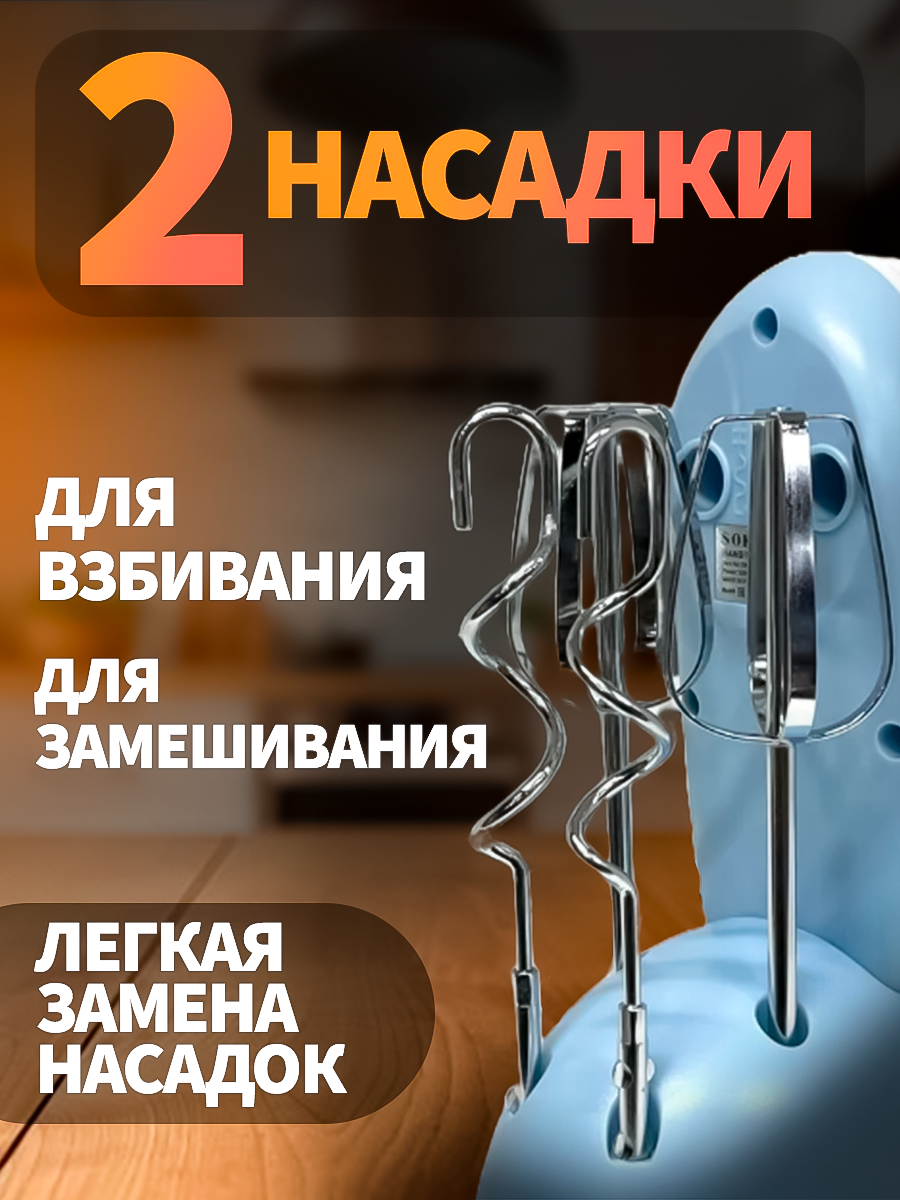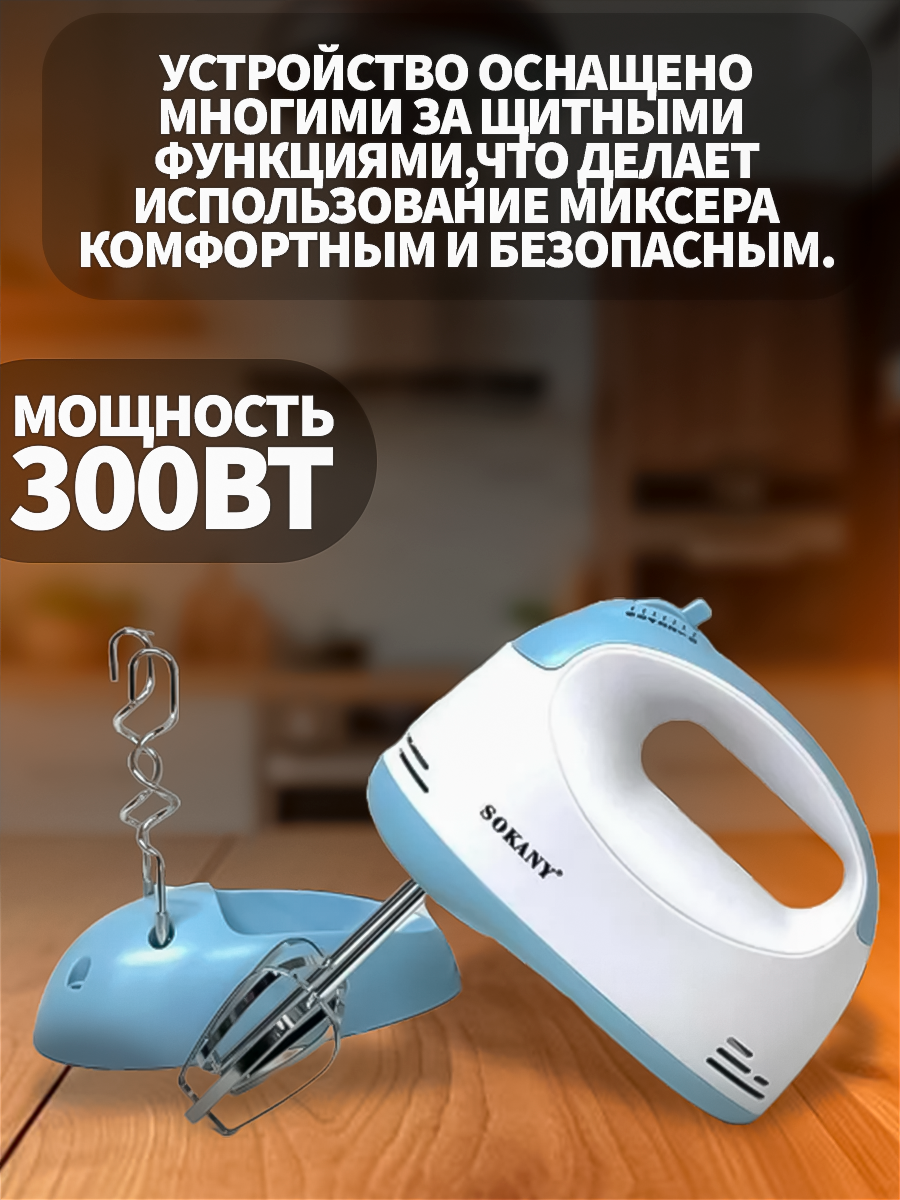 Миксер кухонный ручной на подставке с насадками электрический 300вт, 6 скоростей интересное: