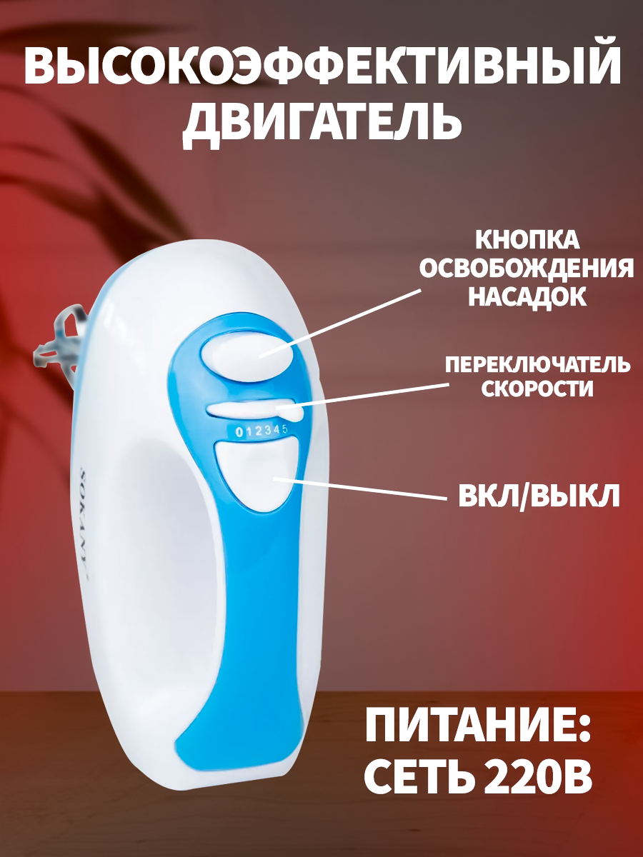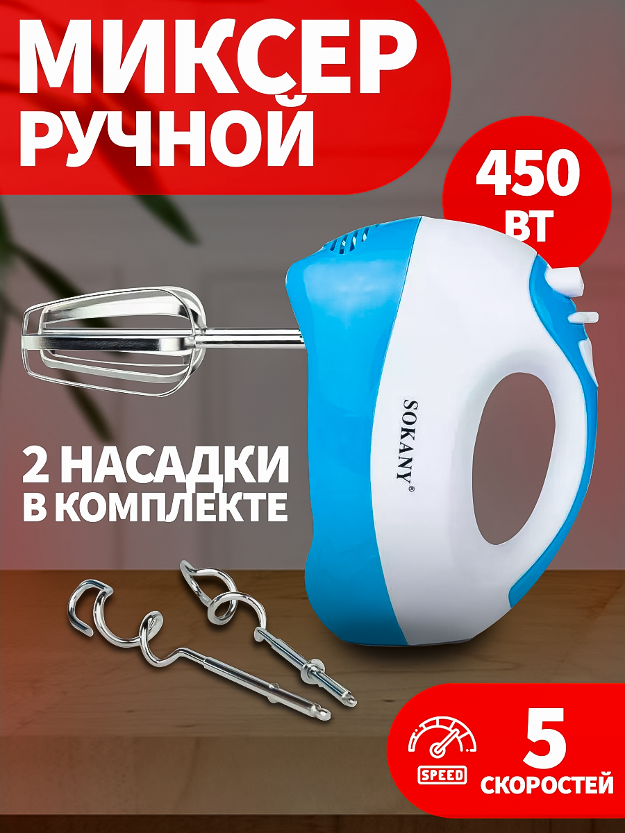 Миксер кухонный ручной с насадками электрический 450вт, 5 скоростей интересное: