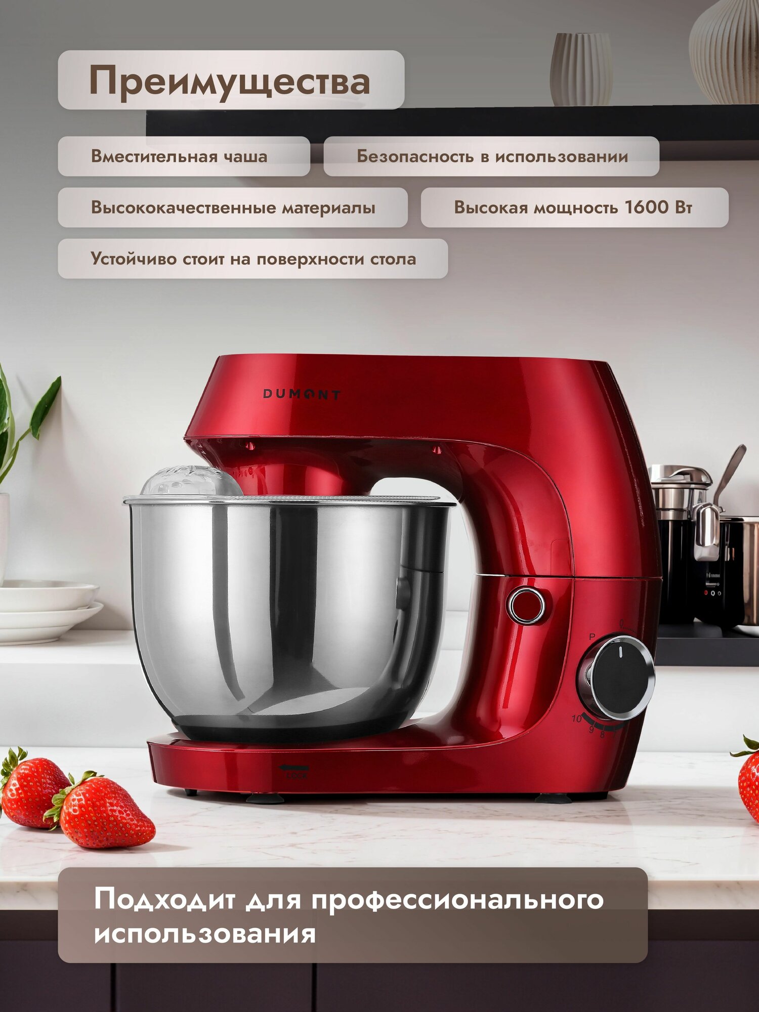 Планетарный миксер Dumont DMSM-2000, 1600 Вт, чаша 5,5 л, 10 скоростей интересное: