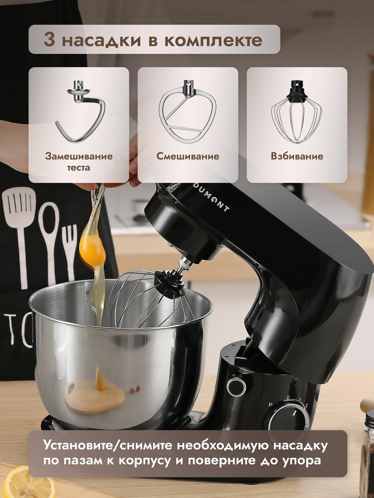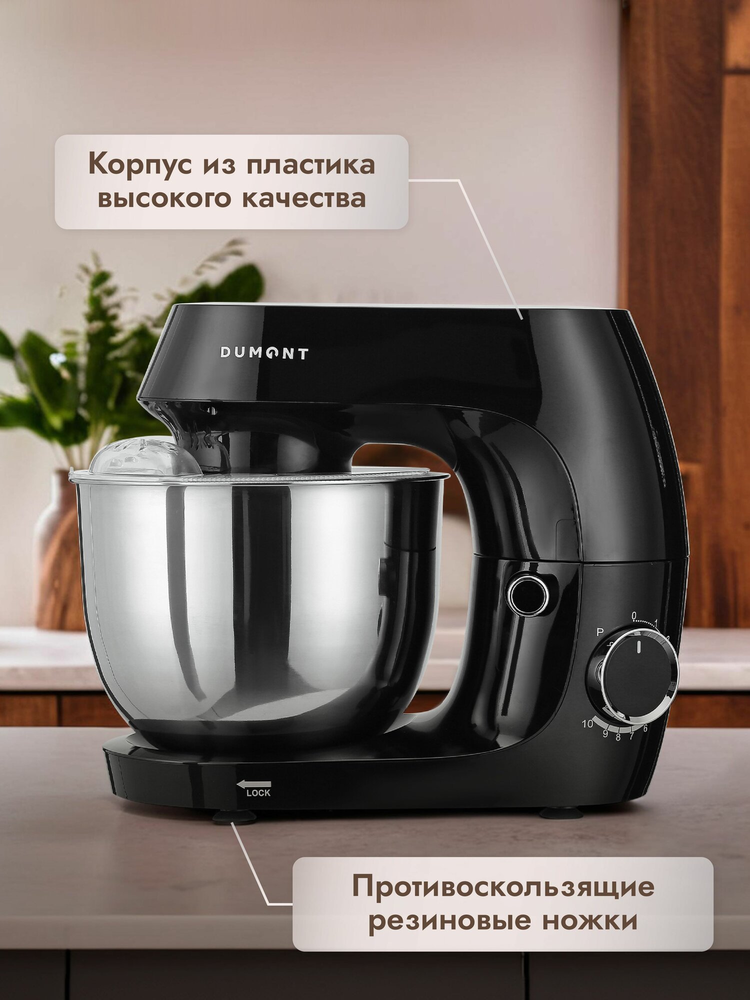 Планетарный миксер Dumont DMSM-2001, 1600 Вт, чаша 5,5 л, черный интересное: