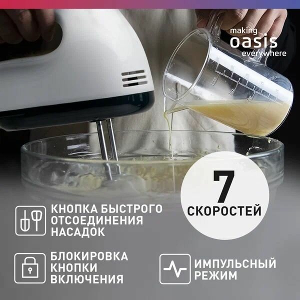 Миксер ручной OASIS MH-30W, белый, 300 Вт, 7 скоростей, заводская, полная интересное: