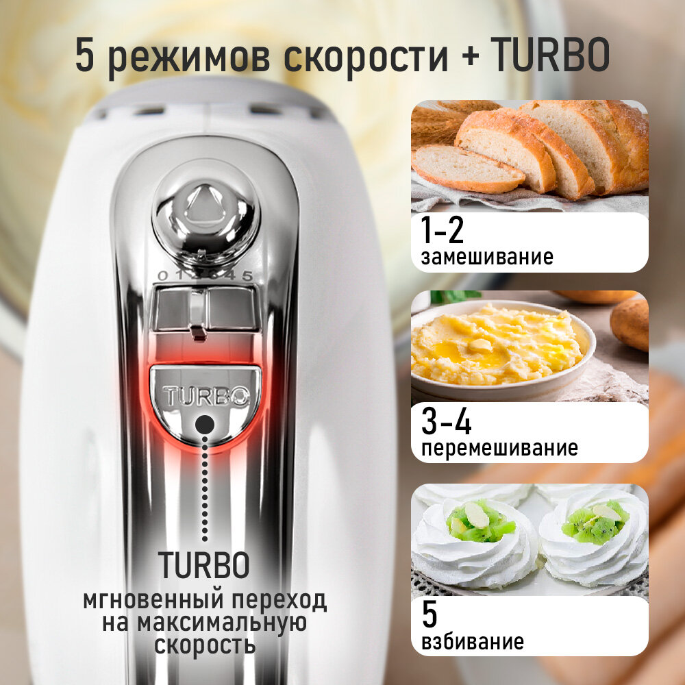 Миксер ручной CHEF PRO CF-MX1307A белый жемчуг интересное: