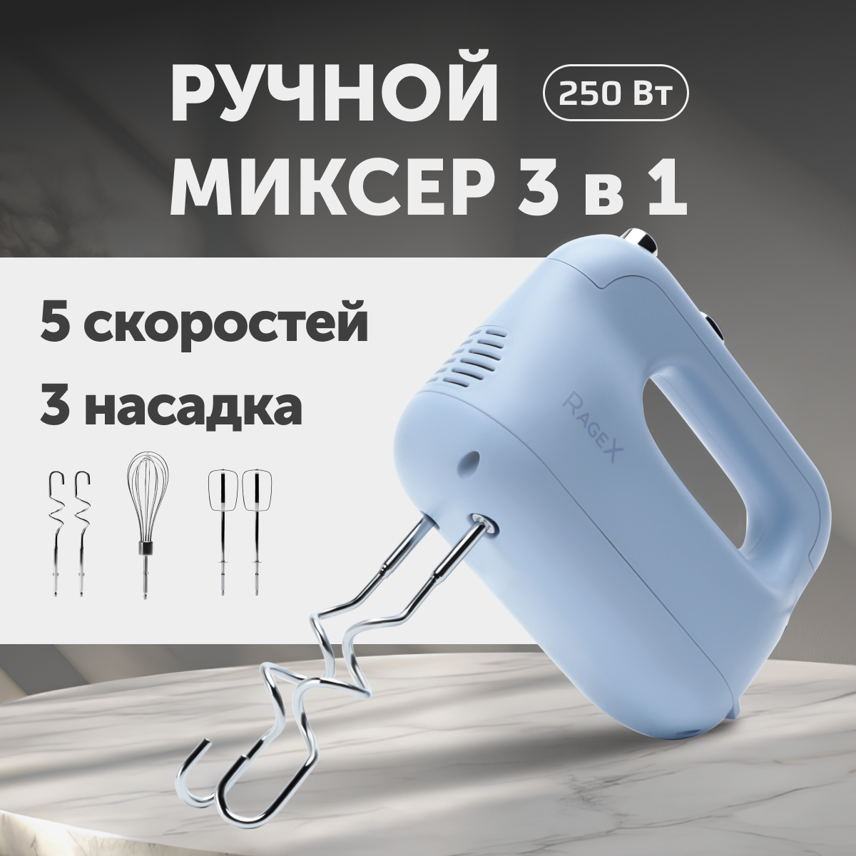 Ручной миксер 3 в 1, 5 скоростей, мощность 250 Вт, небесно-голубой интересное: