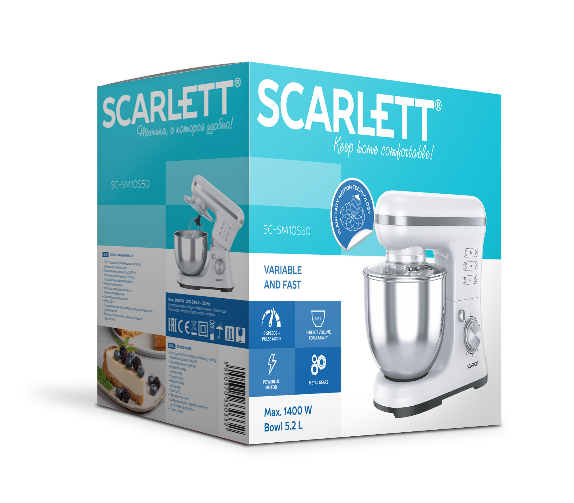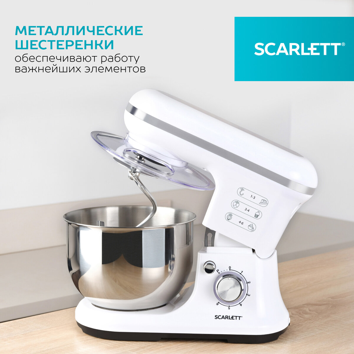 Планетарный миксер SCARLETT SC-SM10S50 с 6 режимами, чаша 5.2 л интересное: