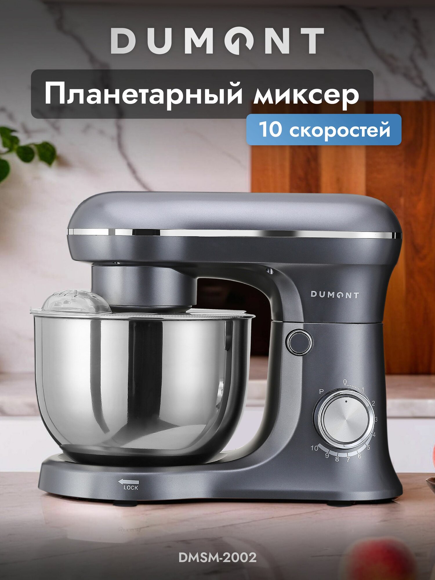 Планетарный миксер Dumont DMSM-2003, чаша 4.5 л, мощность 1600 Вт, 10 скоростей