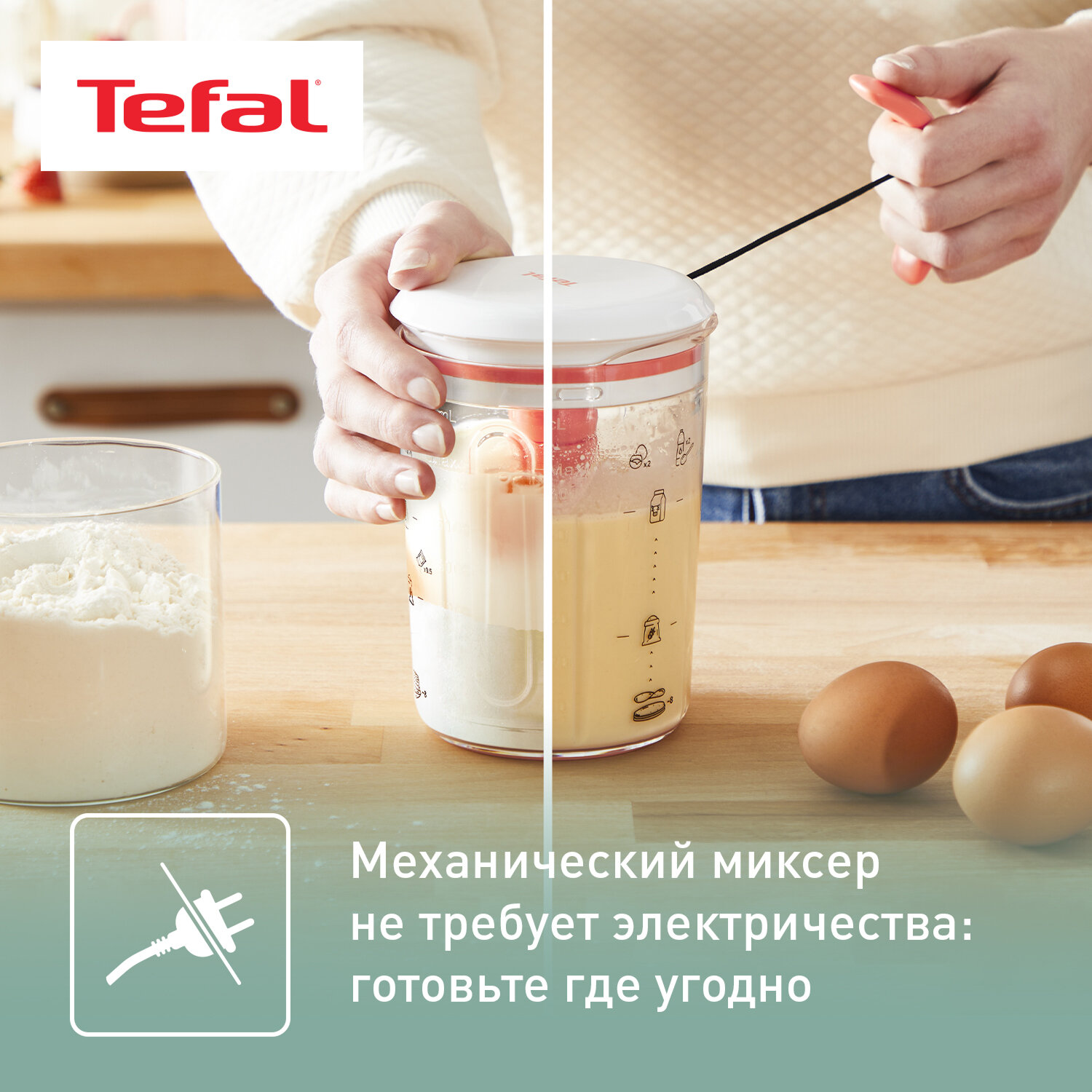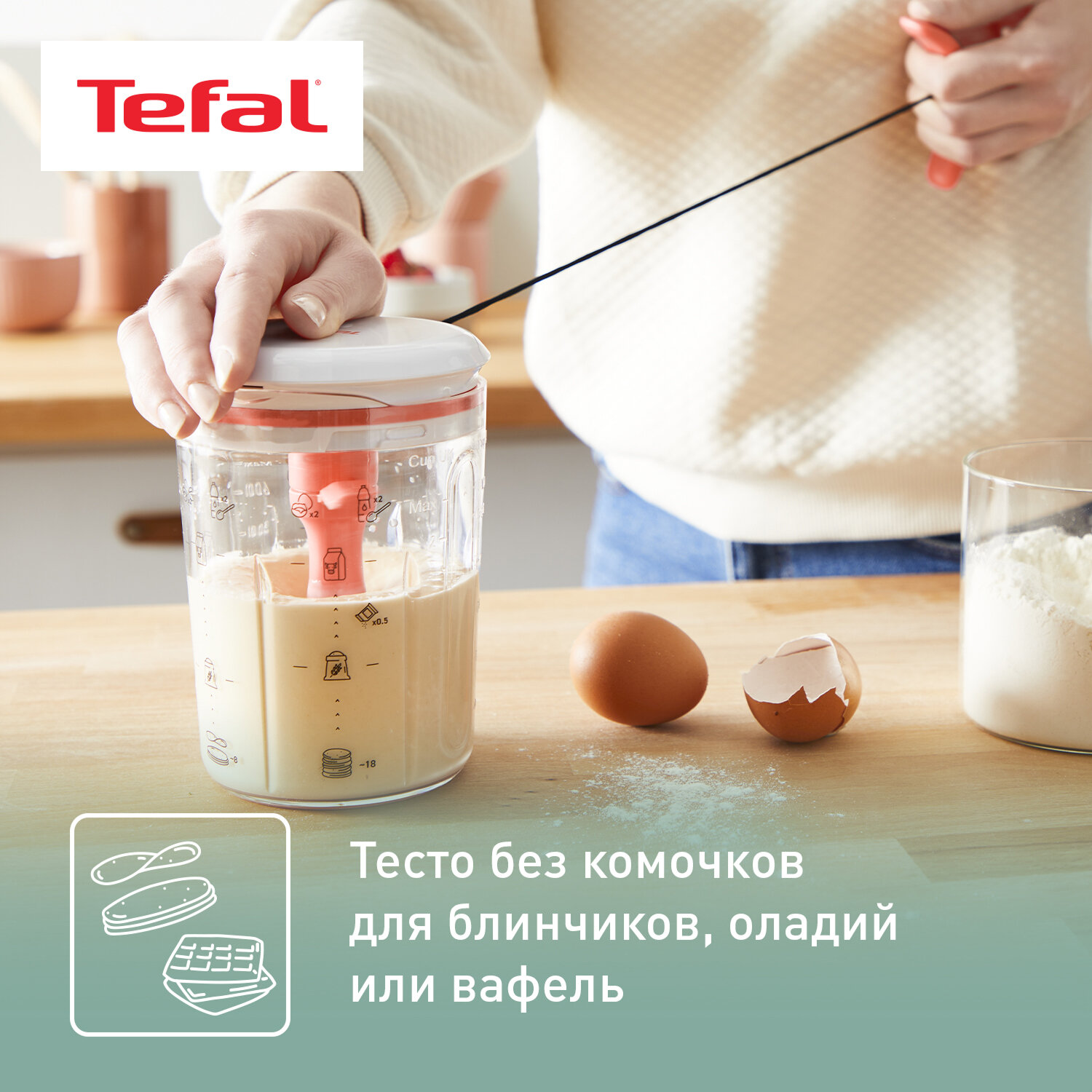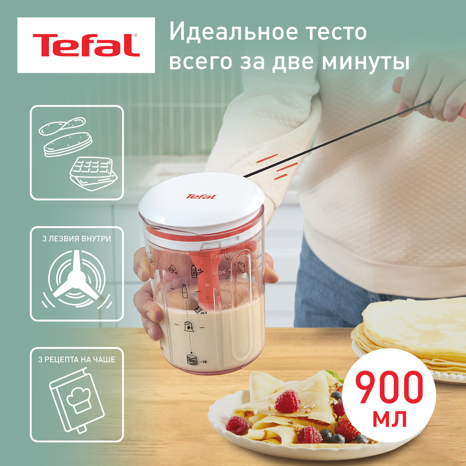 Миксер для теста Tefal Pancake Express K1844404 для приготовления теста для блинов за 2 минуты, 3 рецепта интересное:
