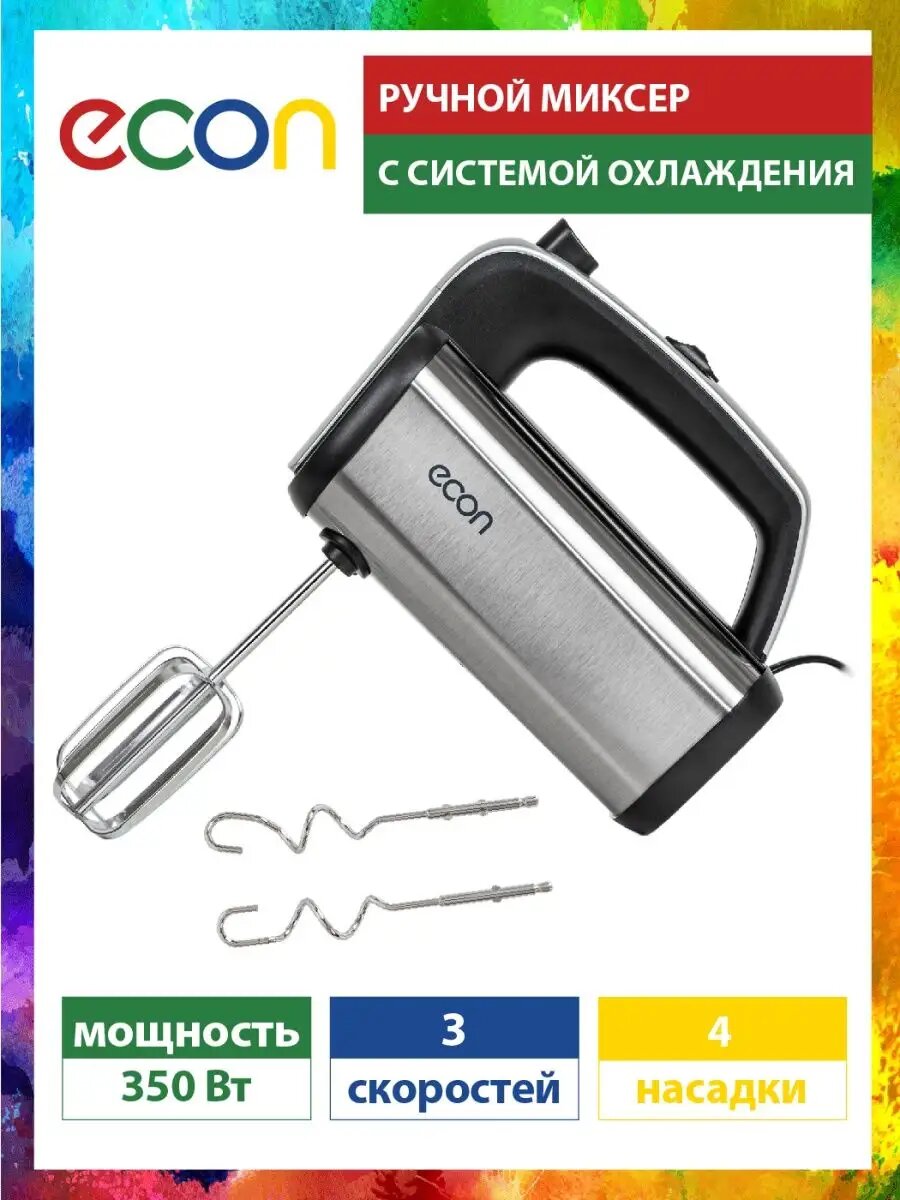 Ручной миксер ECON домашний с эффективной системой охлаждения, 3 скорости, 4 насадки, 350 Вт интересное: