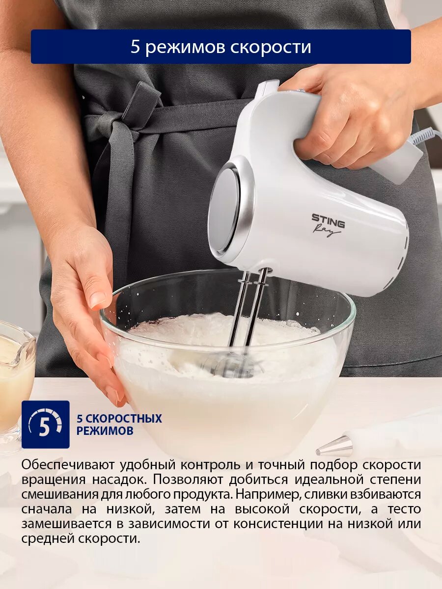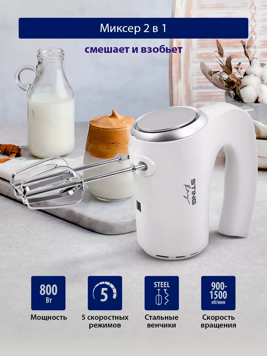 Купить Миксер STINGRAY ST-MX2004, мощность 800Вт, 5 скоростей, с кнопкой отсоединения насадок