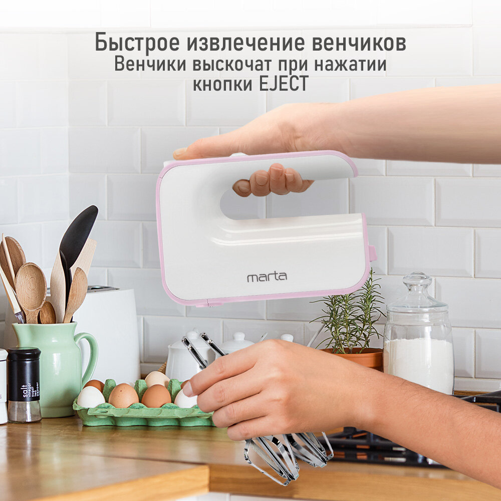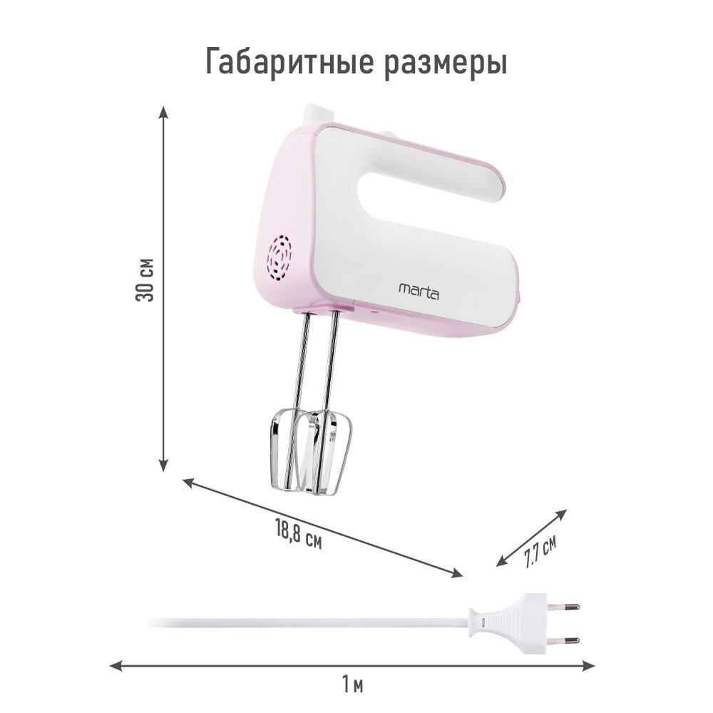 Миксер MARTA MT-MX1517A, без чаши, пластик, 1000 Вт, розовый интересное: