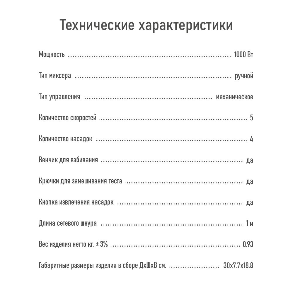 | Тип миксера | ручной |