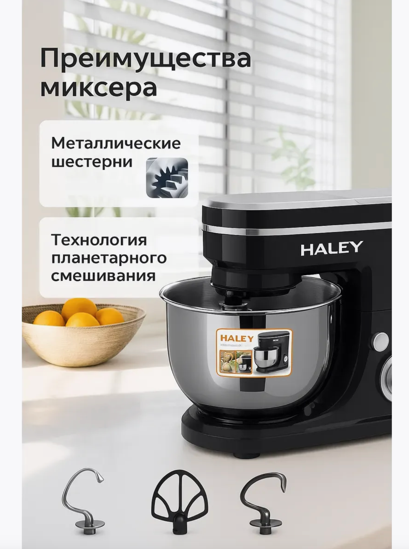 Миксер HALEY HY-2406, нержавеющая сталь, мощность 1200Вт, 6 режимов, чёрн интересное: