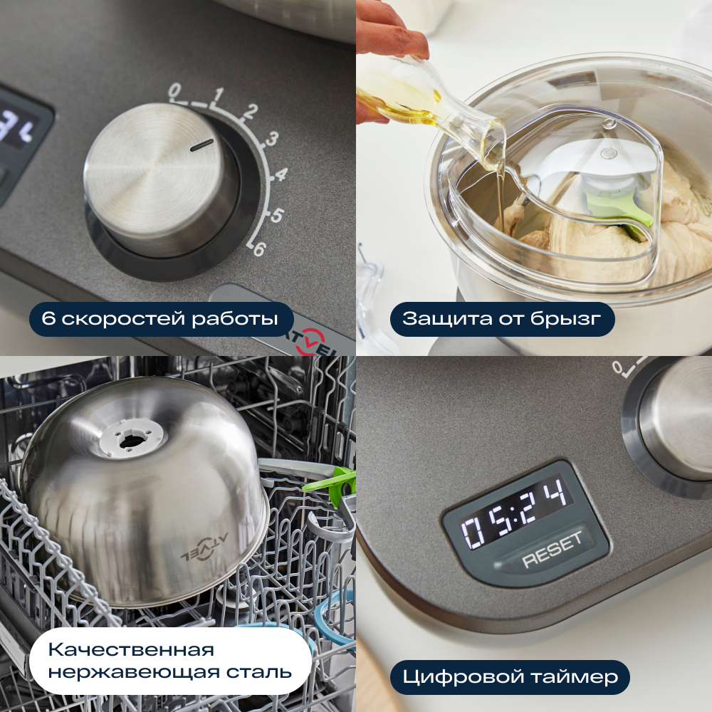 Миксер кухонный электрический ATVEL PowerMix 400521, планетарный, 6 скоростей, 4л, 650 Вт, тестомесильная машина с чашей интересное: