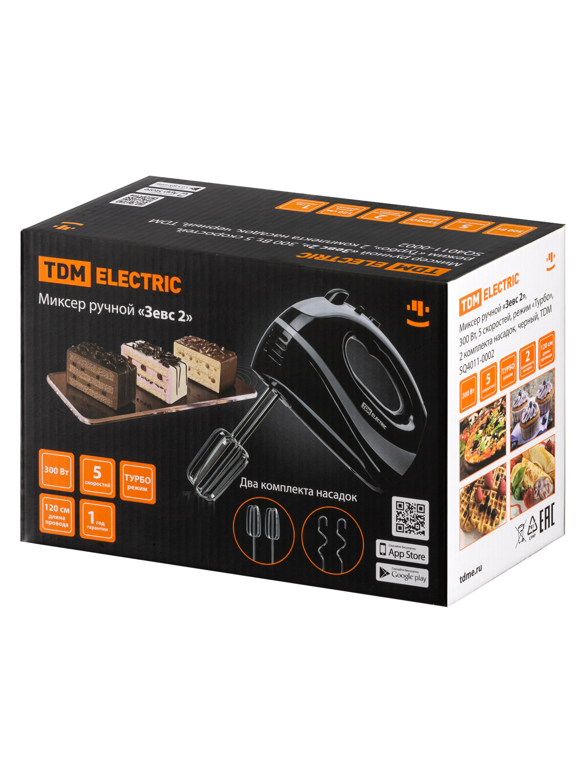 Купить Миксер ручной «Зевс 2», 300 Вт, 5 скоростей, режим «Турбо», 2 комплекта насадок, черный, TDM, шт