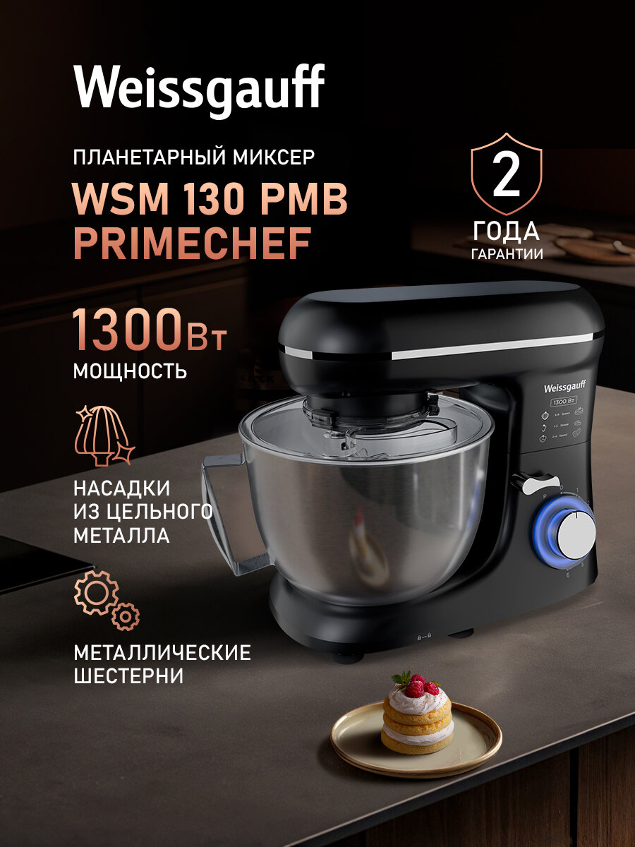 Купить Миксер планетарный Weissgauff WSM 130 PMB PrimeChef, 6 скоростей работы, двигатель 1300 Вт, импульсный режим