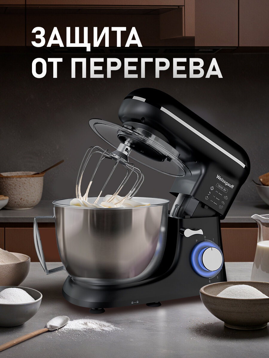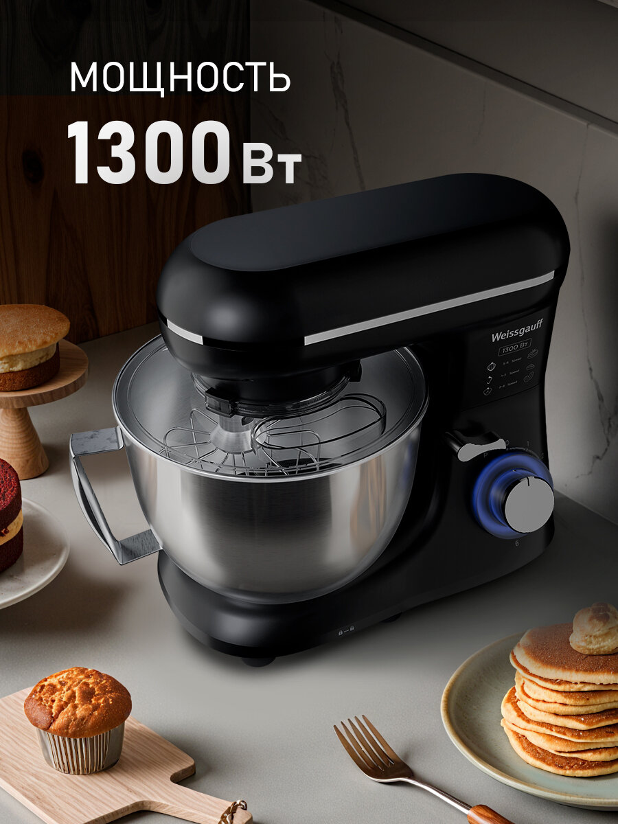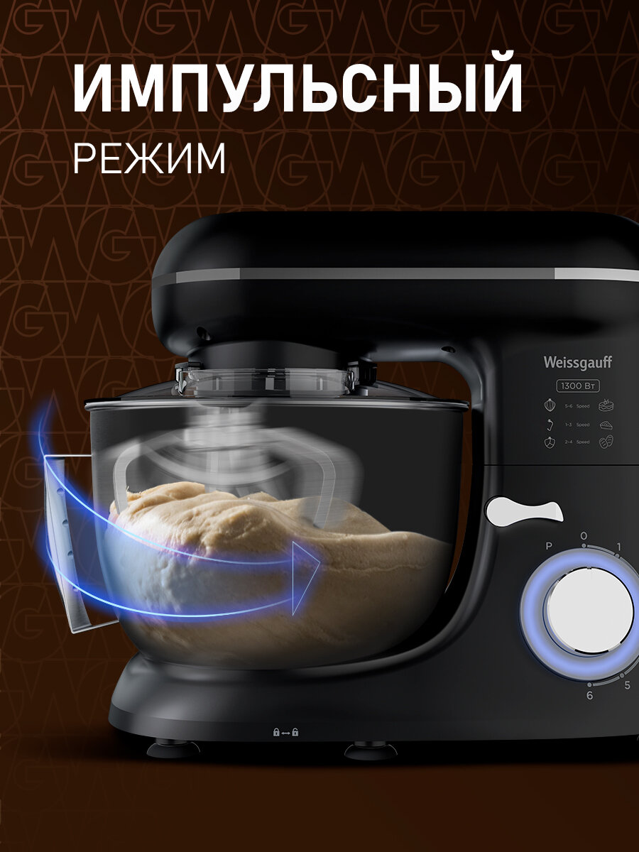 Миксер планетарный Weissgauff WSM 130 PMB PrimeChef, 6 скоростей работы, двигатель 1300 Вт, импульсный режим интересное: