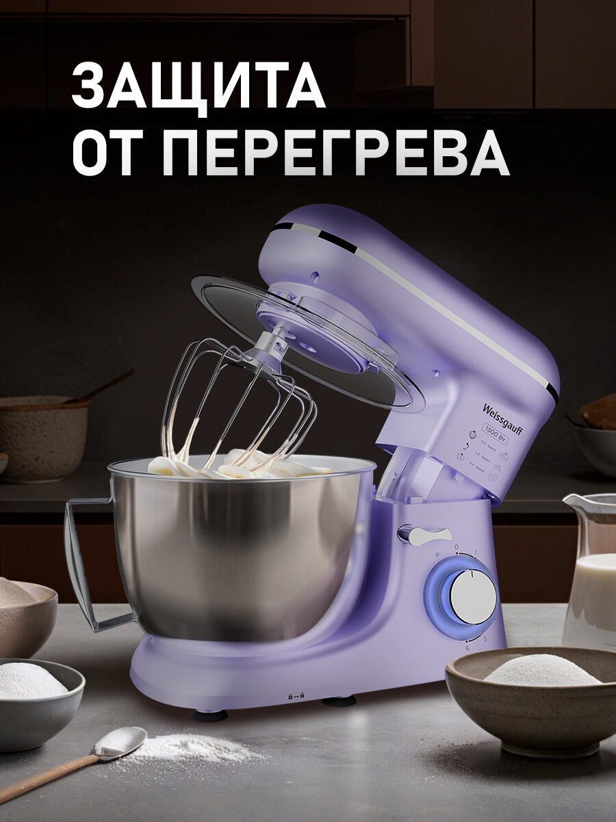 Миксер планетарный Weissgauff WSM 131 PML PrimeChef, Двигатель 1300 Вт, Металлические шестерни, 6 скоростей работы интересное: