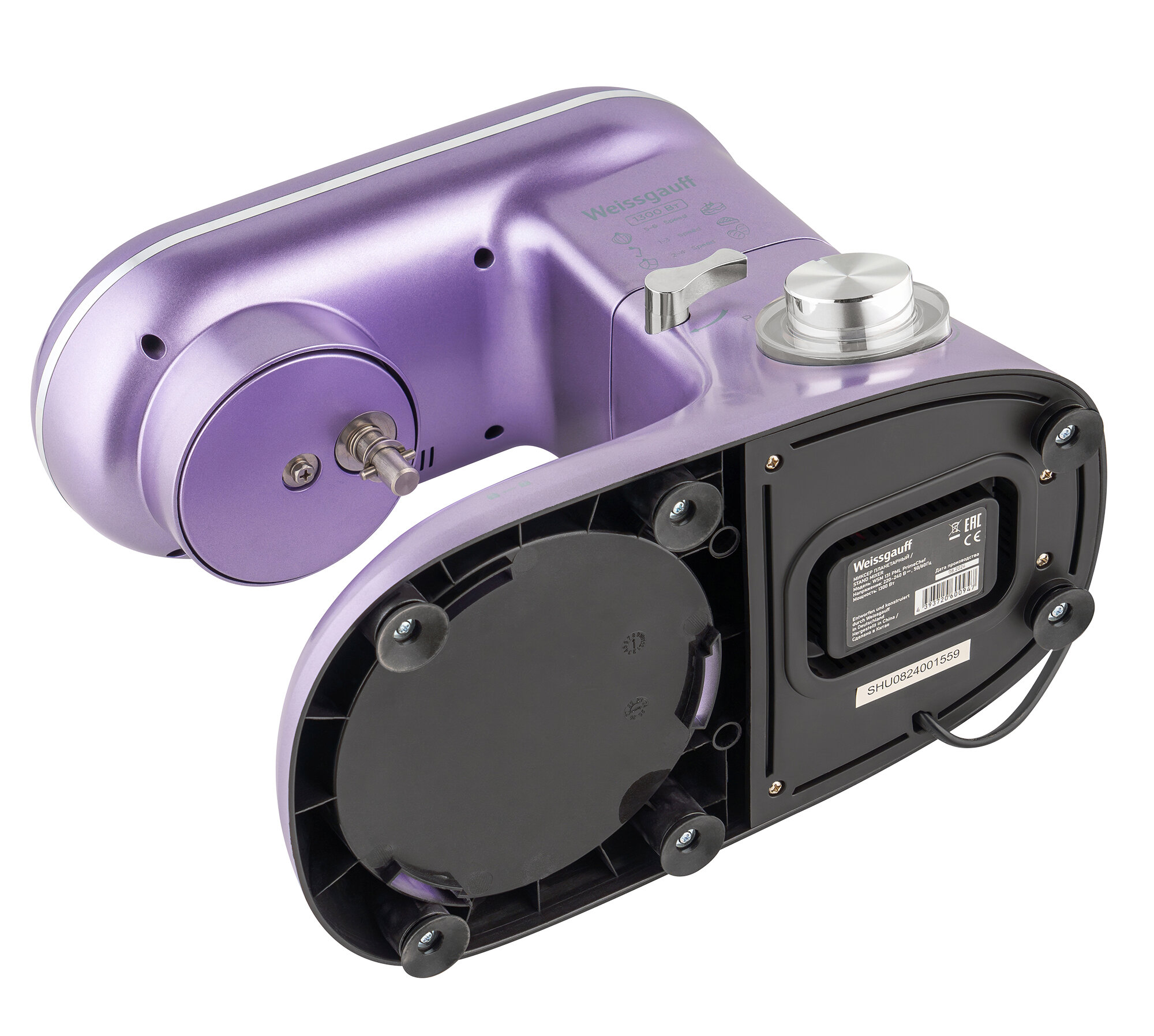 Купить Миксер планетарный Weissgauff WSM 131 PML PrimeChef, Двигатель 1300 Вт, Металлические шестерни, 6 скоростей работы