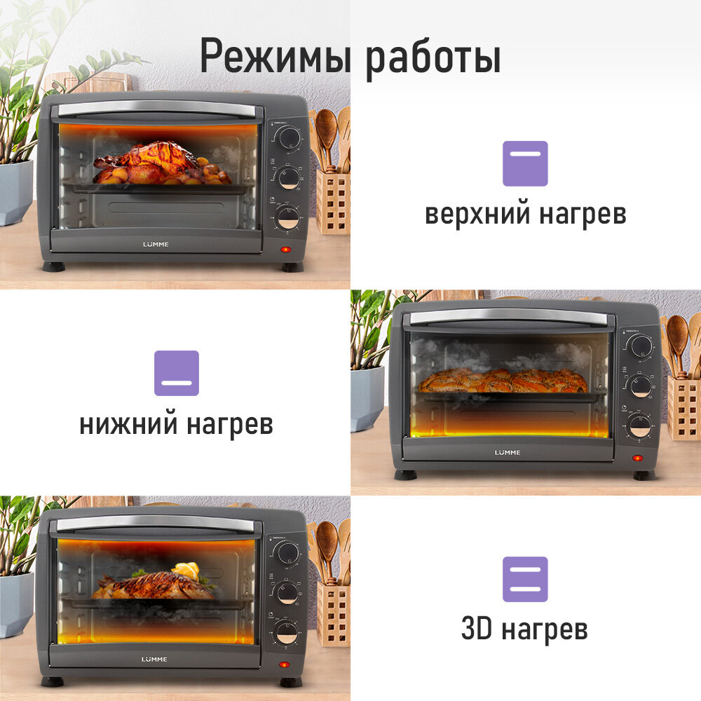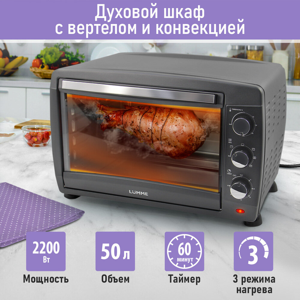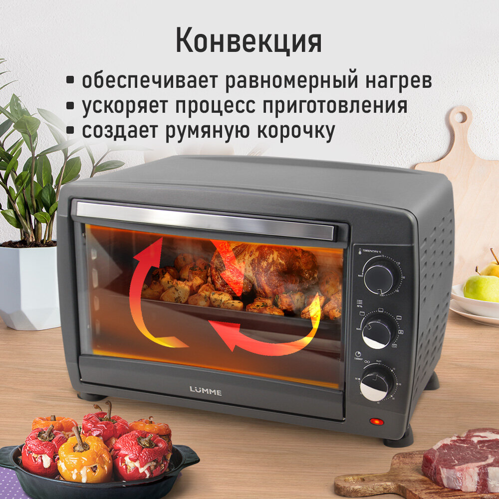 Духовка духовой шкаф мини-печь LUMME LU-EO1717B 50 литров конвекция вертел гриль серебряный сапфир интересное: